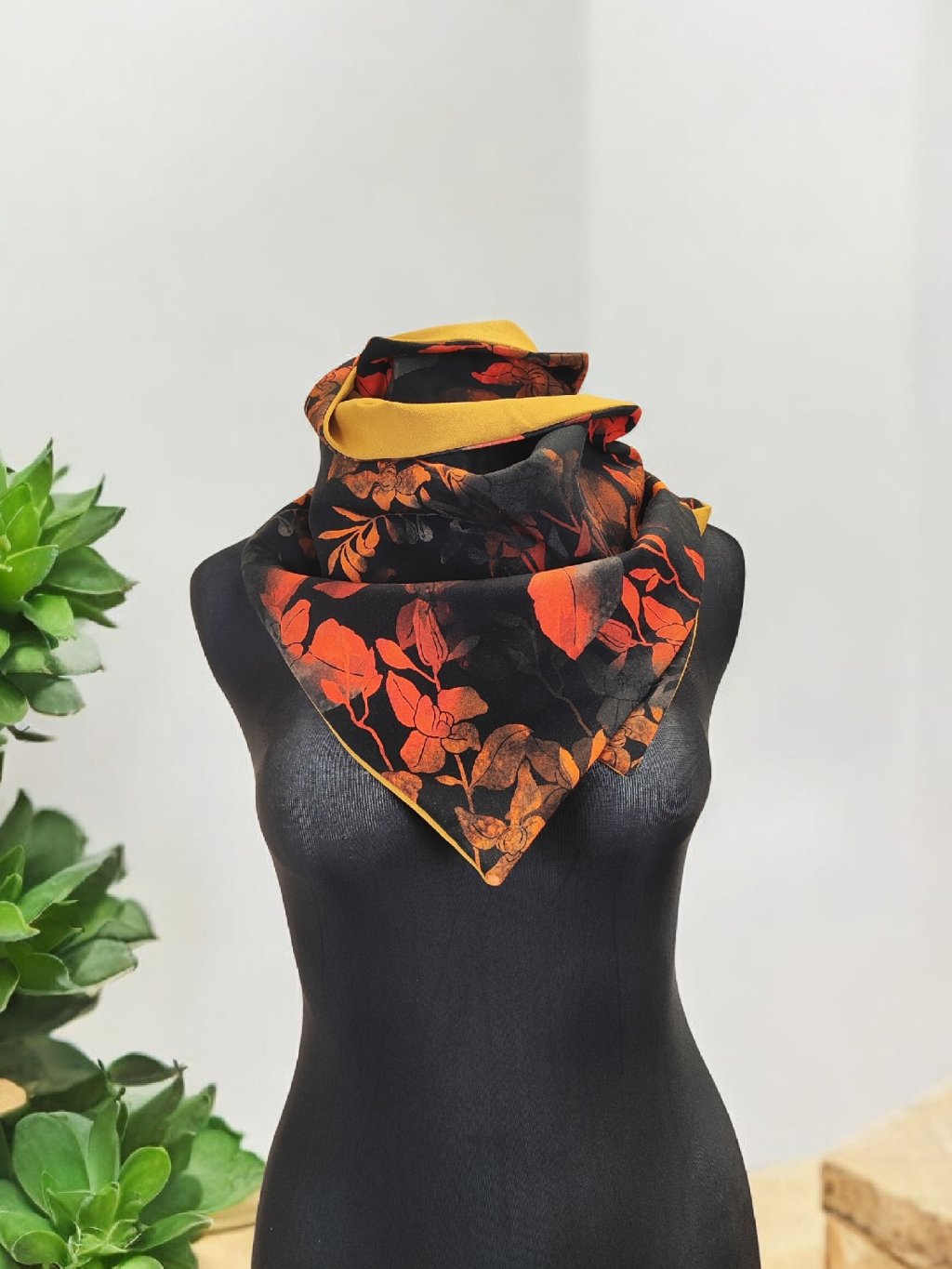 Oboustranná šátkošála na knoflík/ krátká šála na knoflík, Podzimní listy/ okrová