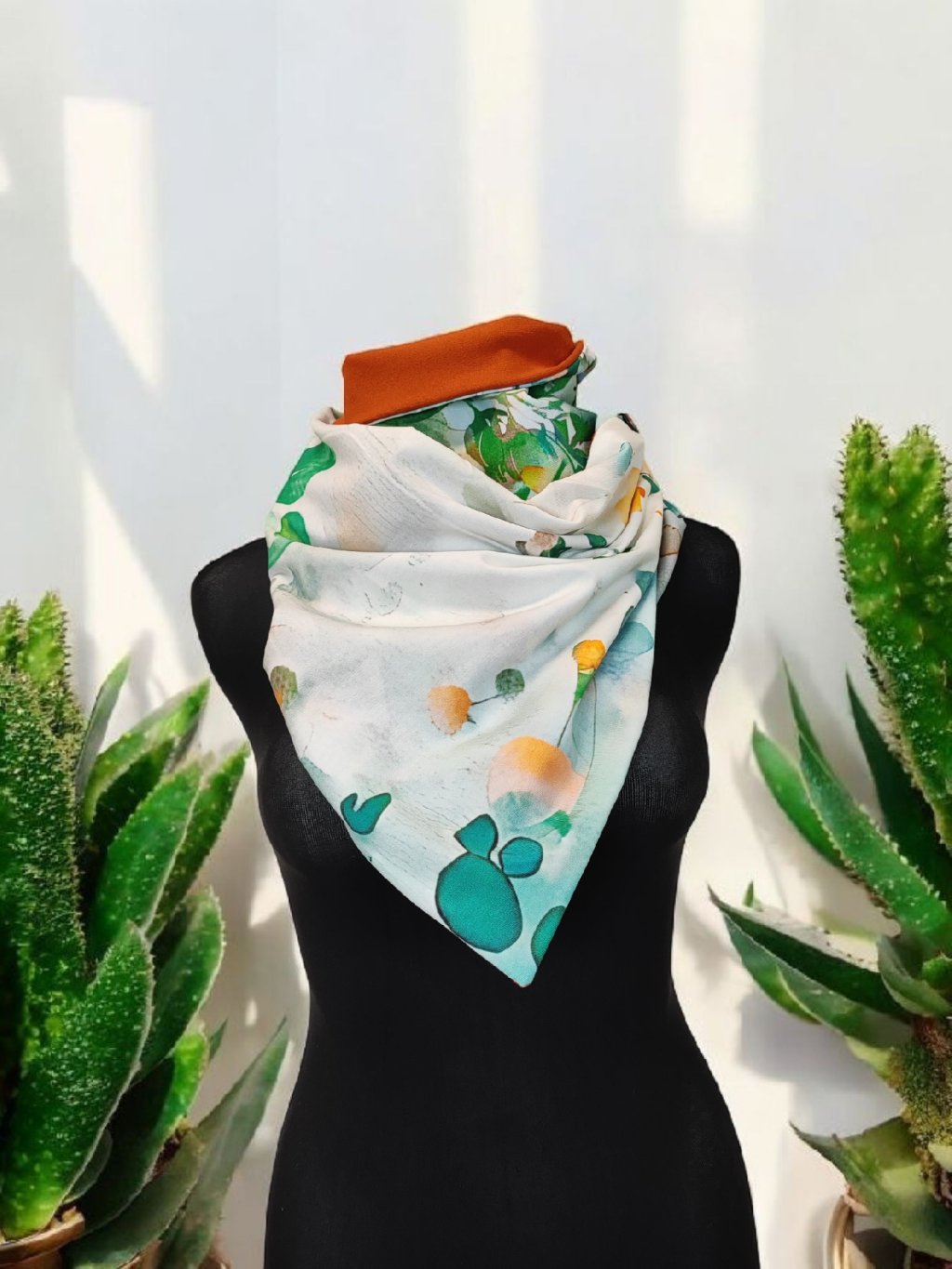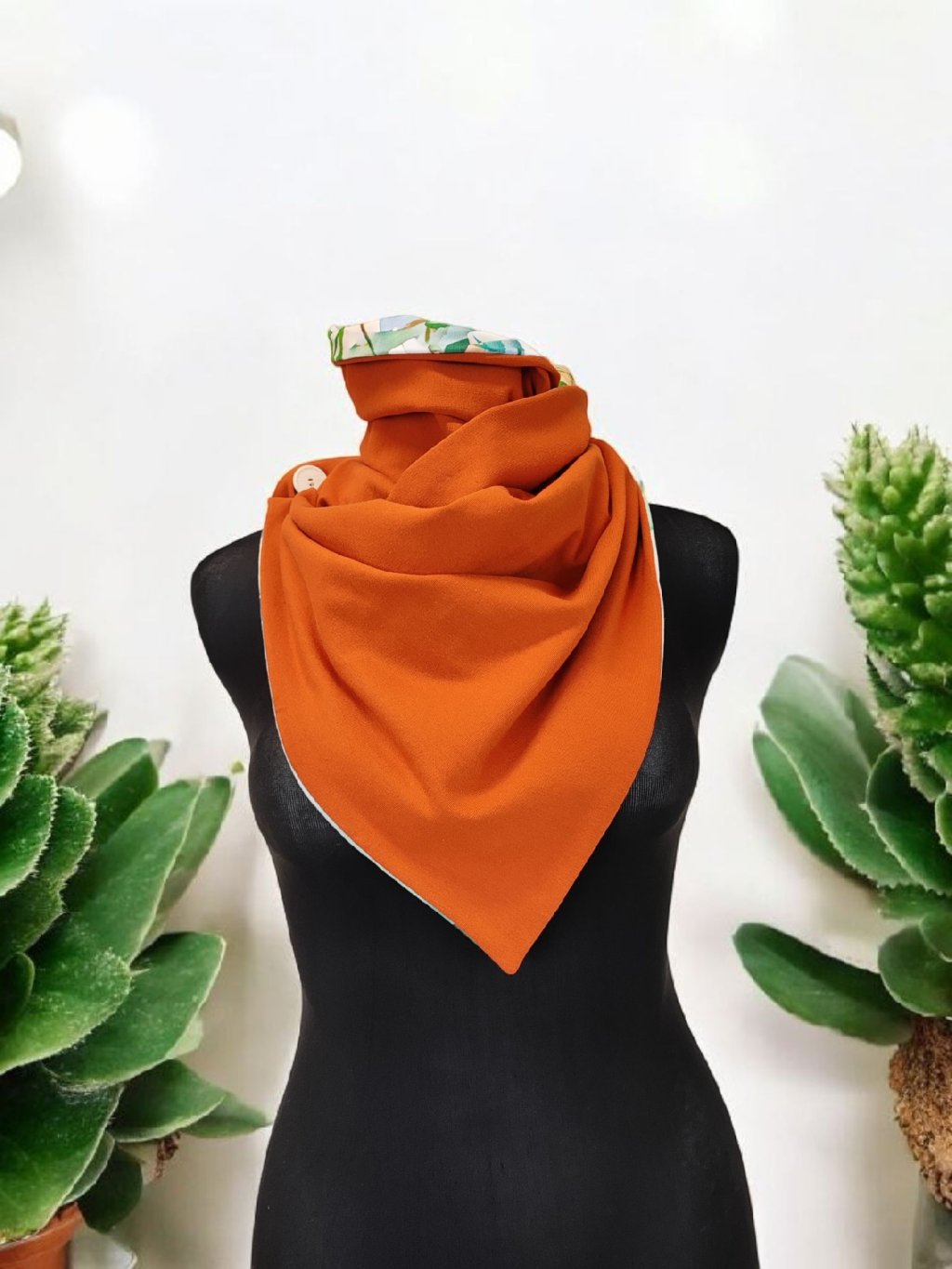 Oboustranná šátkošála na knoflík/ krátká šála na knoflík, Rostliny/ terracotta