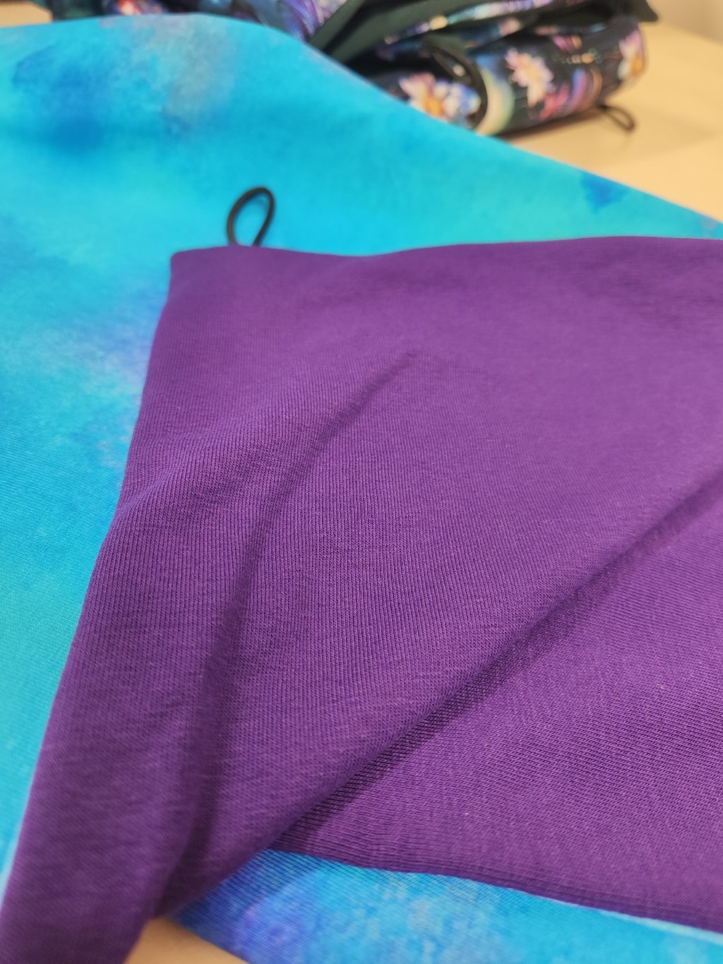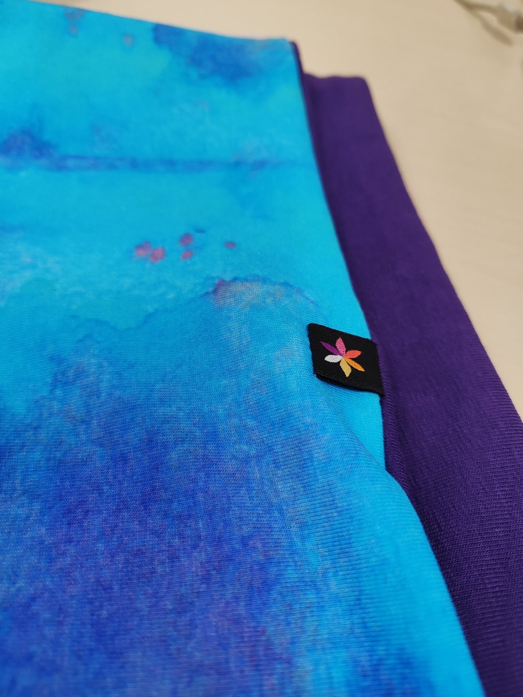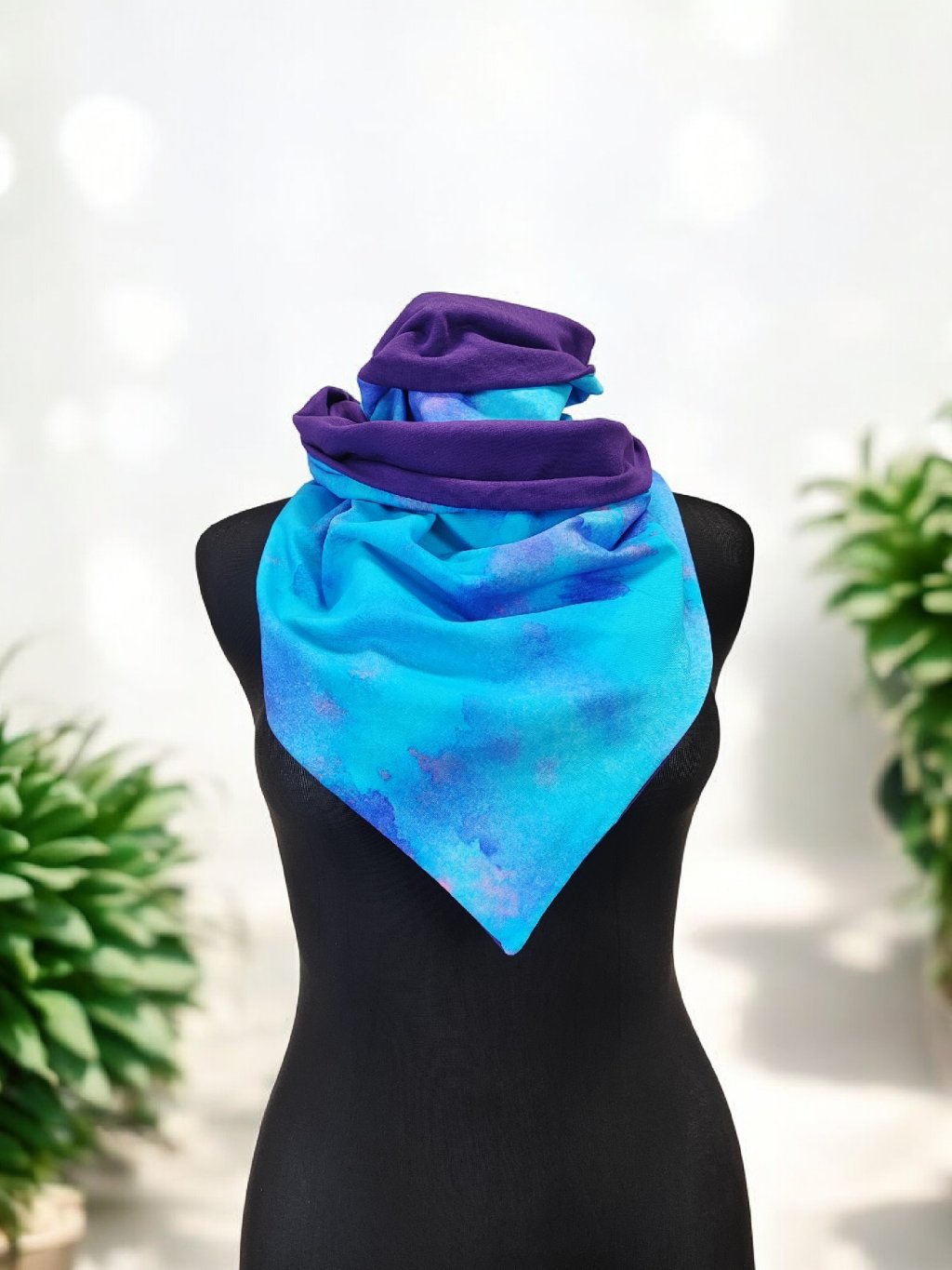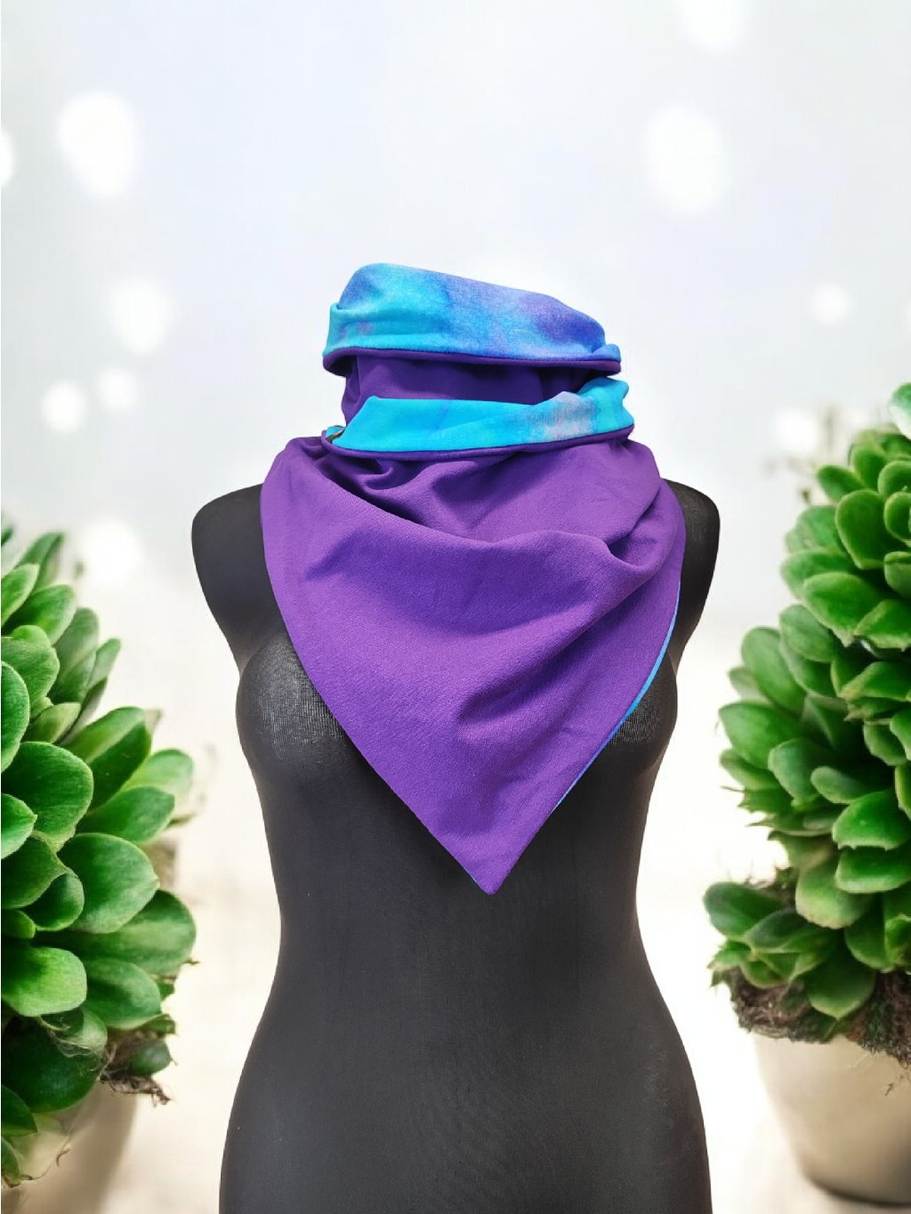Oboustranná šátkošála na knoflík/ krátká šála na knoflík, tyrkysová/ fialová