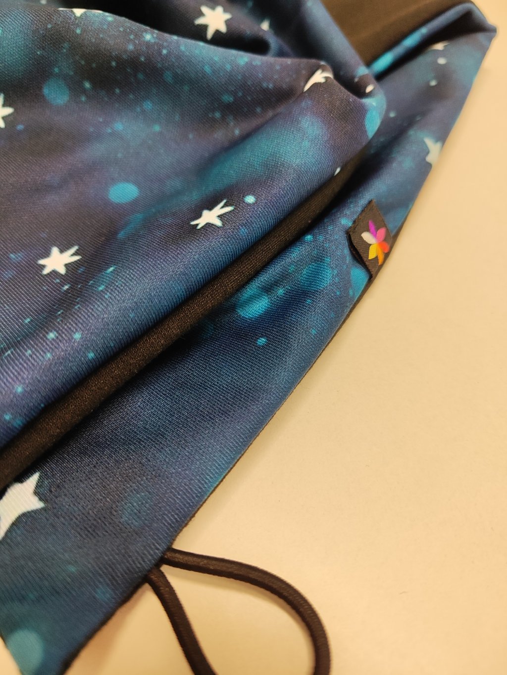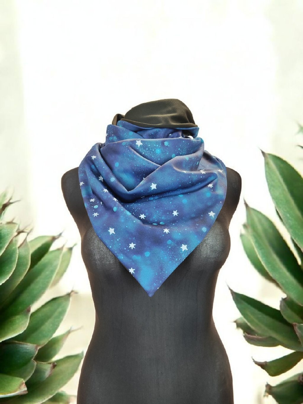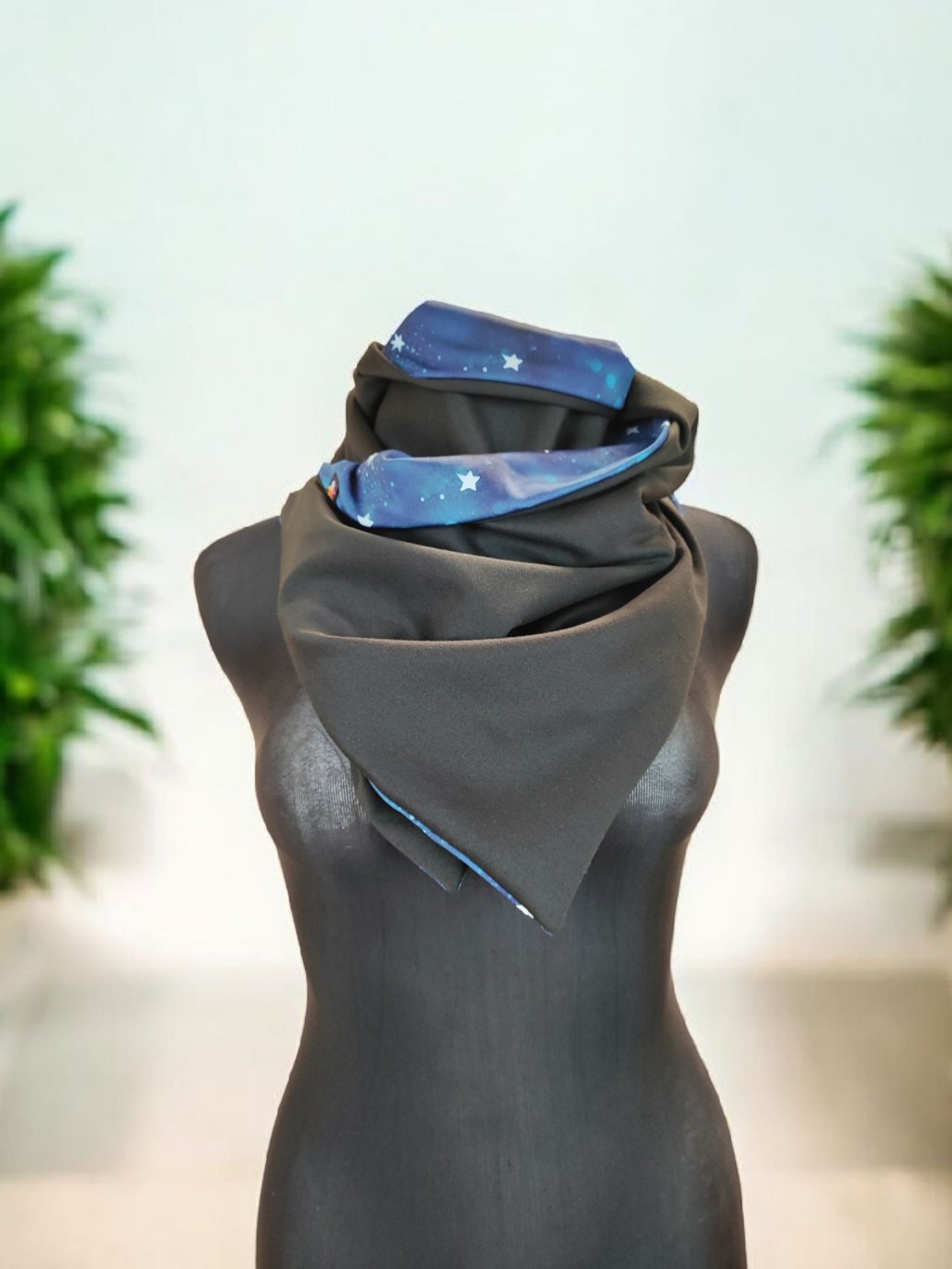 Oboustranná šátkošála na knoflík/ krátká šála na knoflík Hvězdičky/ černá