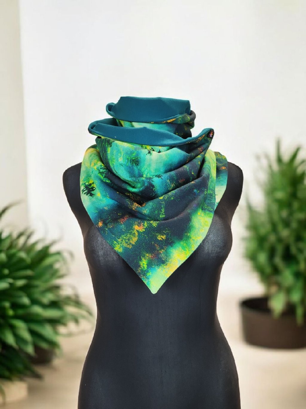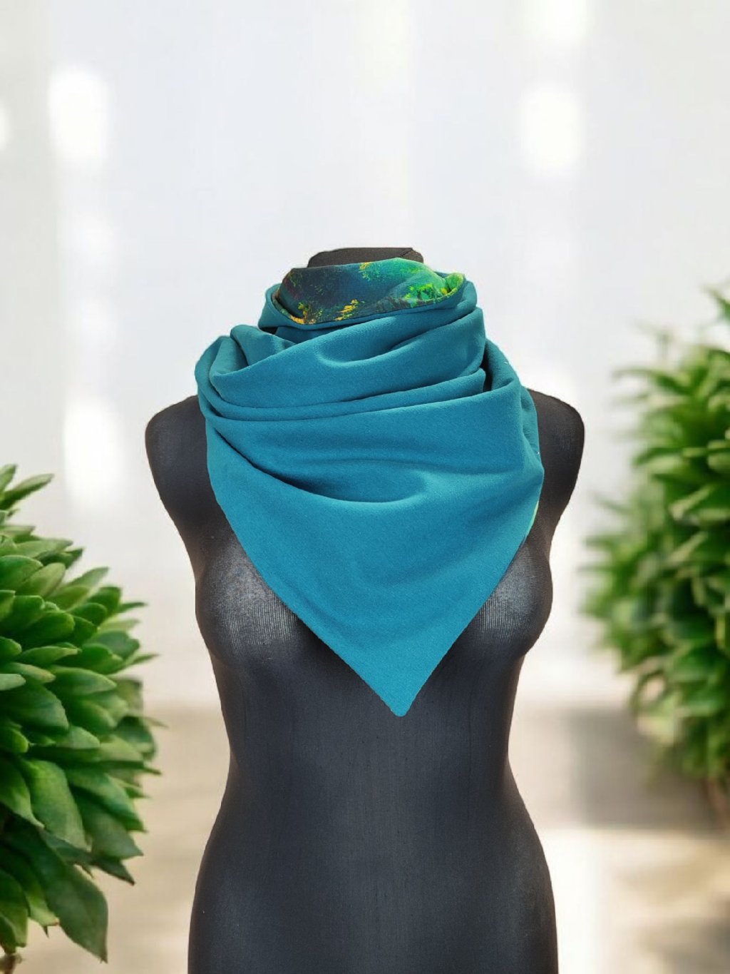 Oboustranná šátkošála na knoflík/ krátká šála na knoflík Les/petrolejová