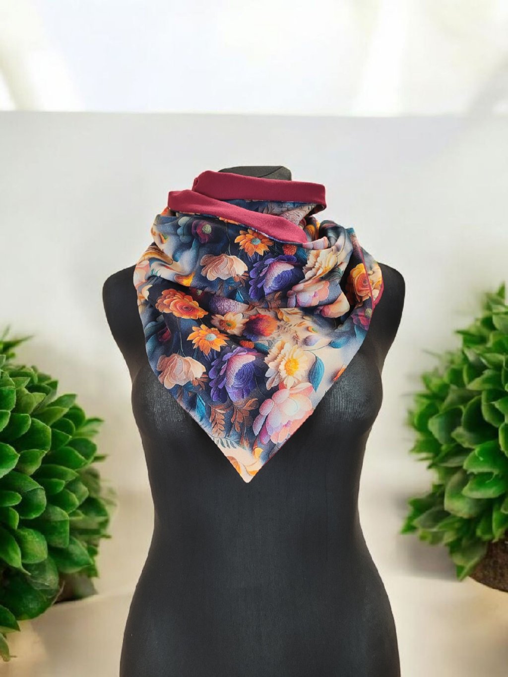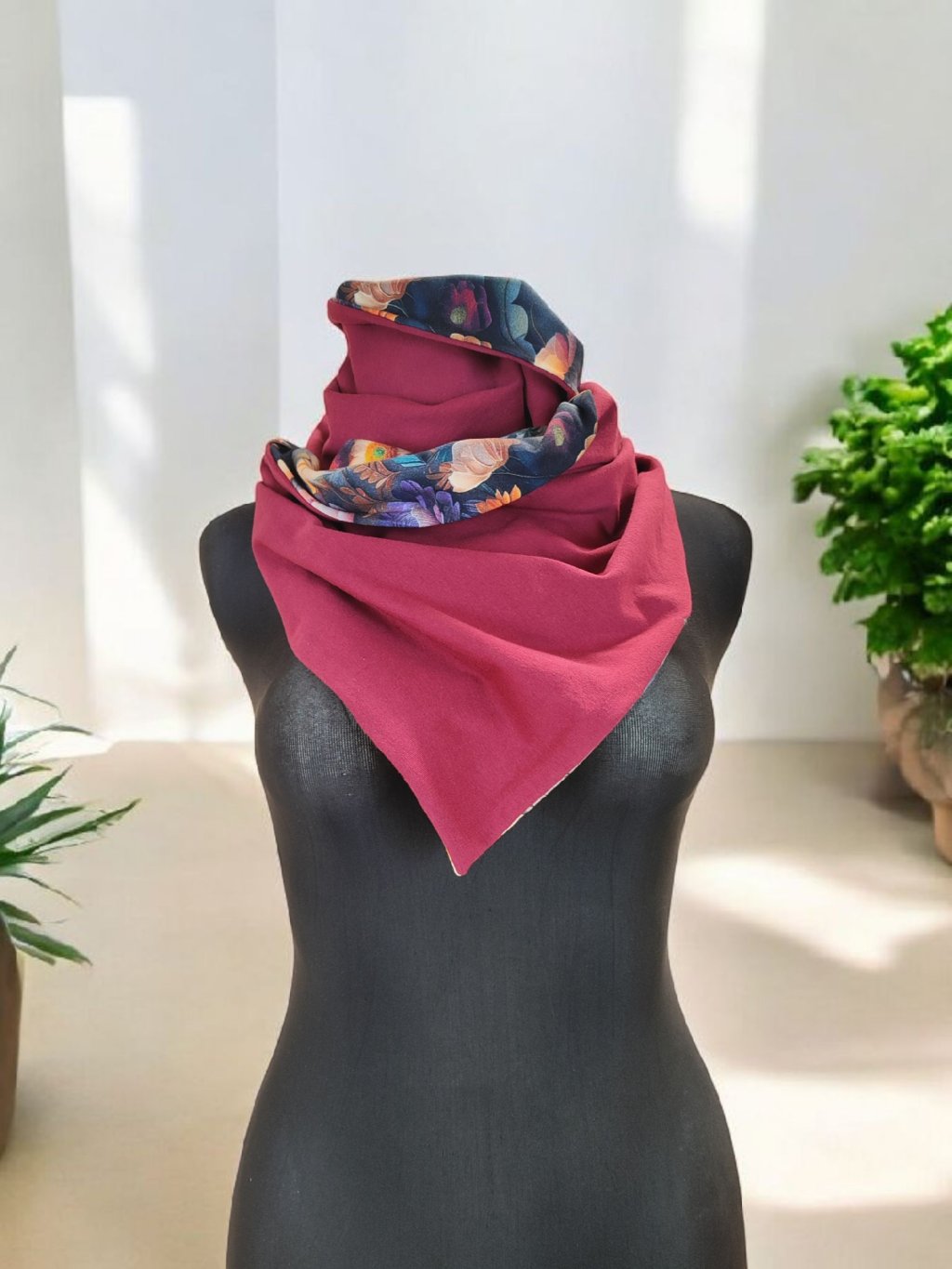 Oboustranná šátkošála na knoflík/ krátká šála na knoflík Podzimní zahrada/vínová