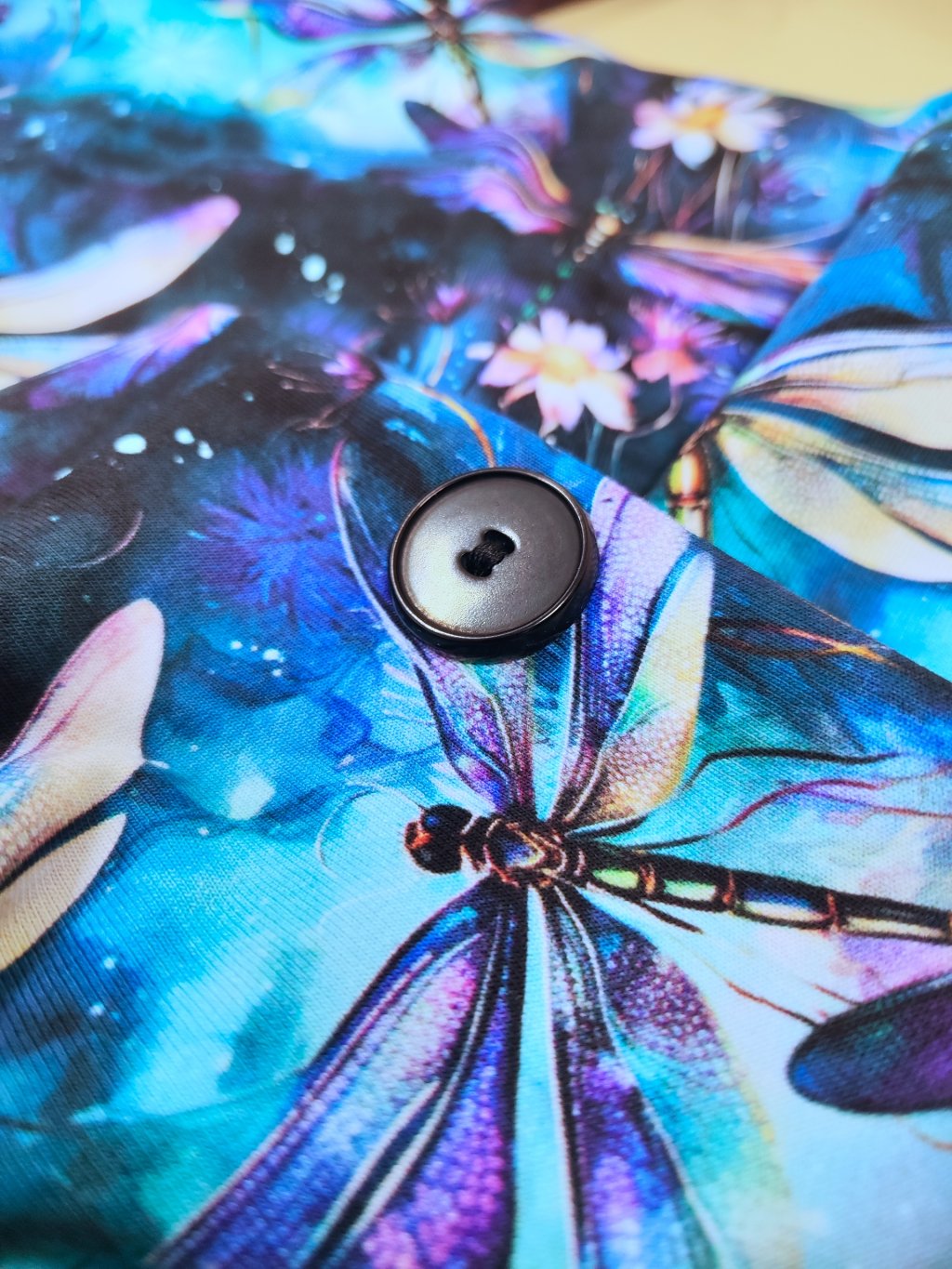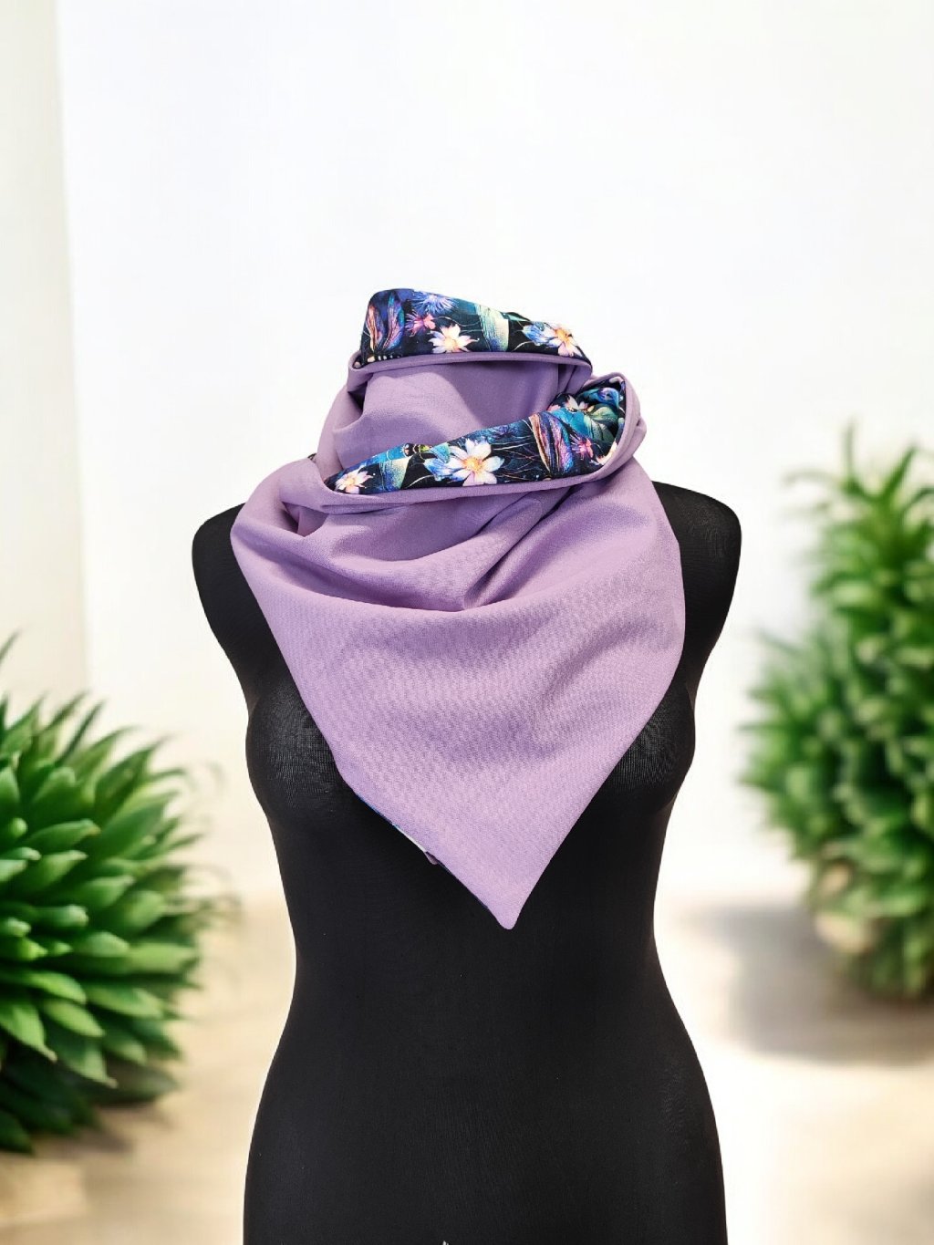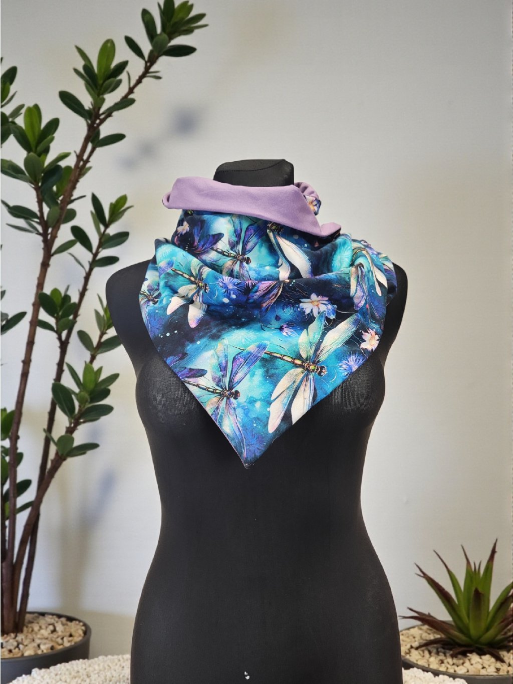 Oboustranná šátkošála na knoflík/ krátká šála na knoflík Vážky/ lila