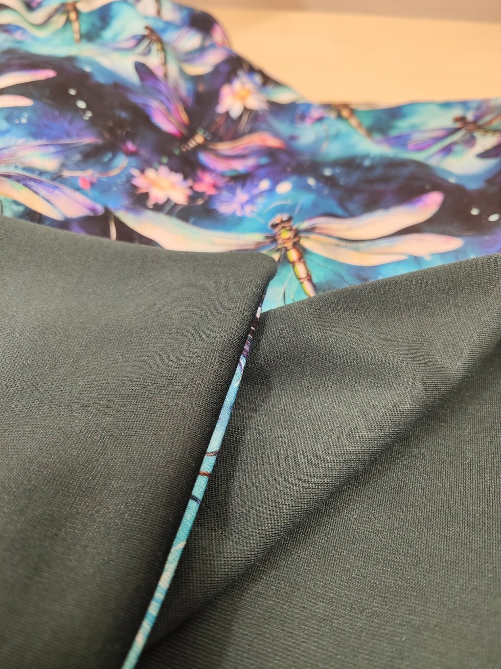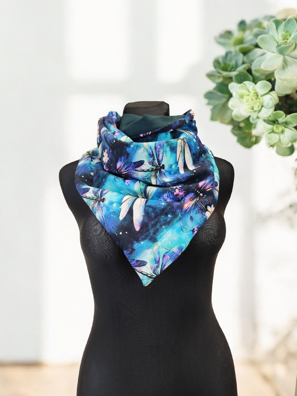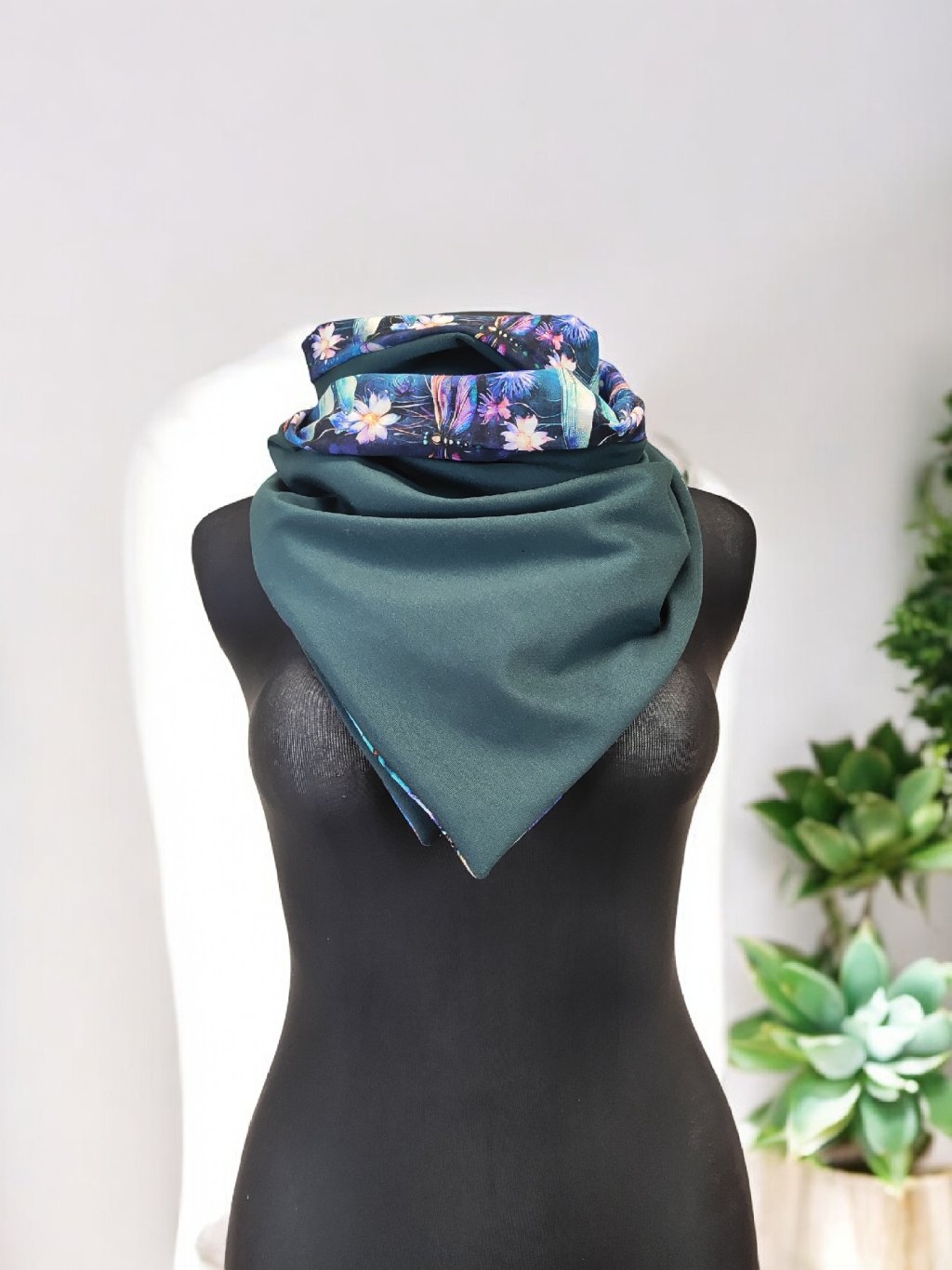 Oboustranná šátkošála na knoflík/ krátká šála na knoflík Vážky/ petrolejová