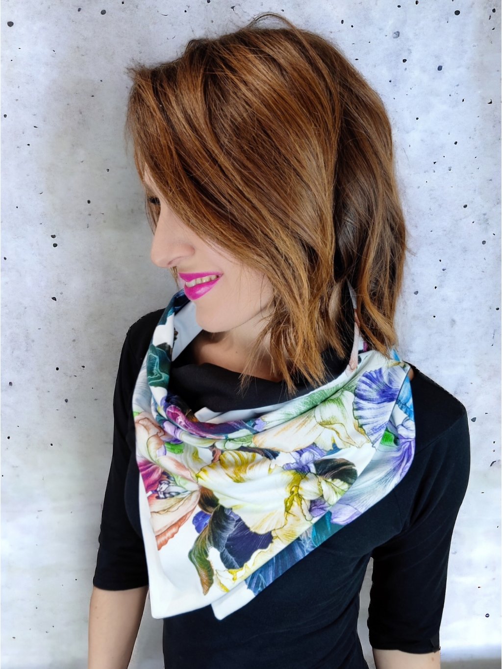 Oboustranná šátkošála na knoflík, květovaná/ černá