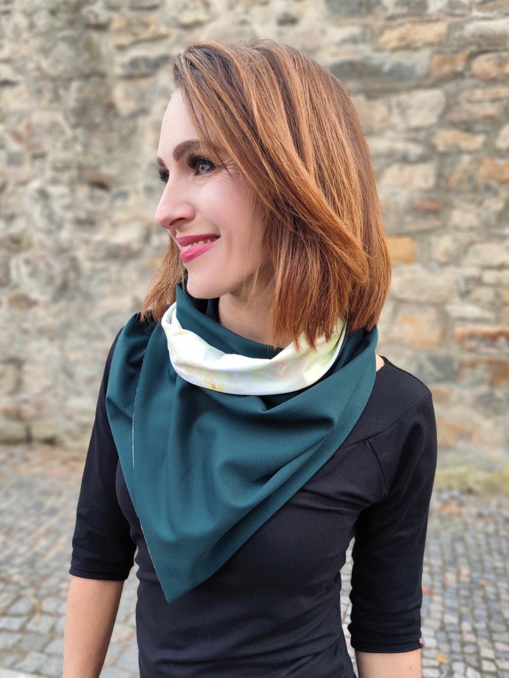 Oboustranná šála na knoflík se hodí od podzimu do jara.