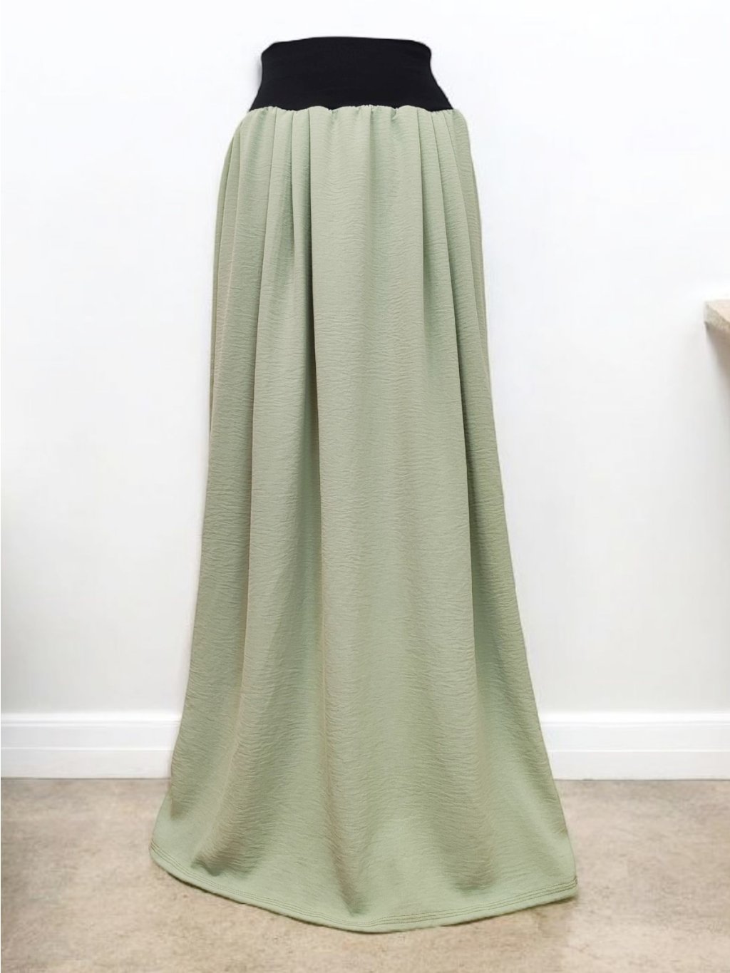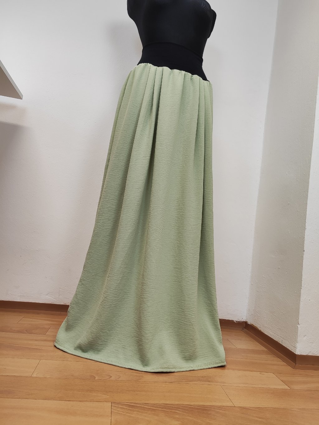 Pistáciově zelená dlouhá sukně HELENE, mačkaný materiál