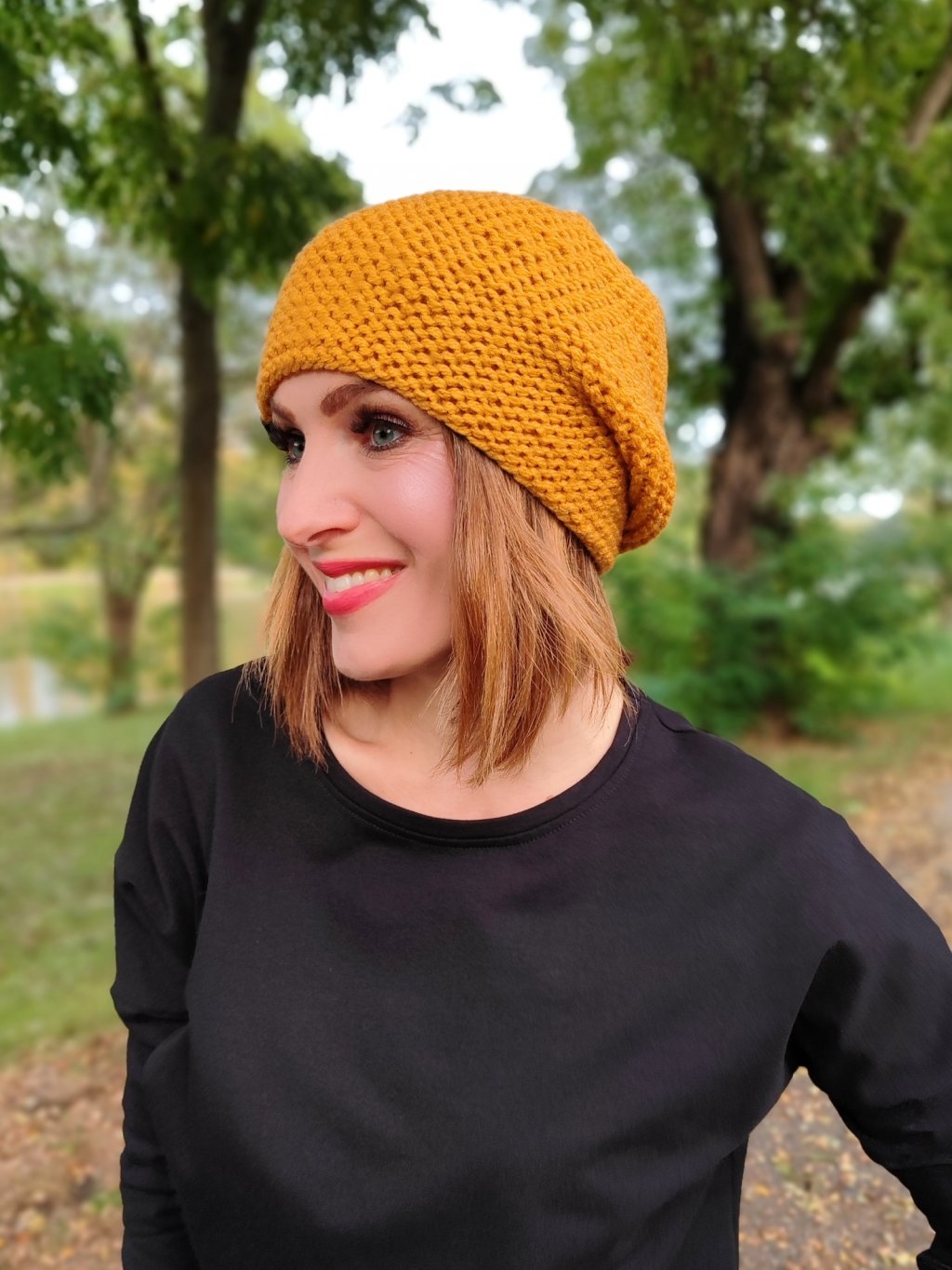 Tato čepice je náš vlastní střih, má "přepadlý" tvar.