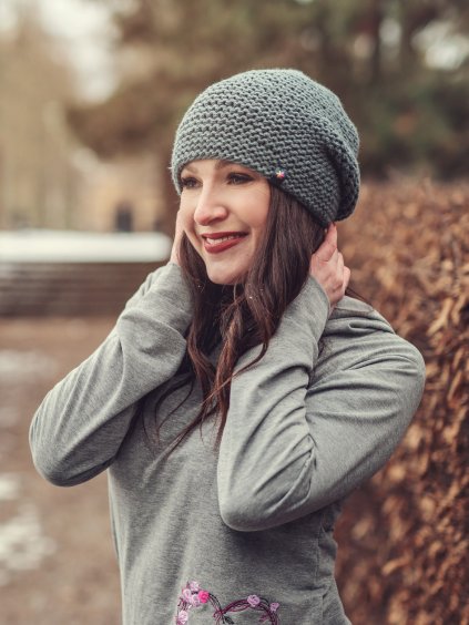 Tato čepice je náš vlastní střih, má "přepadlý" tvar.