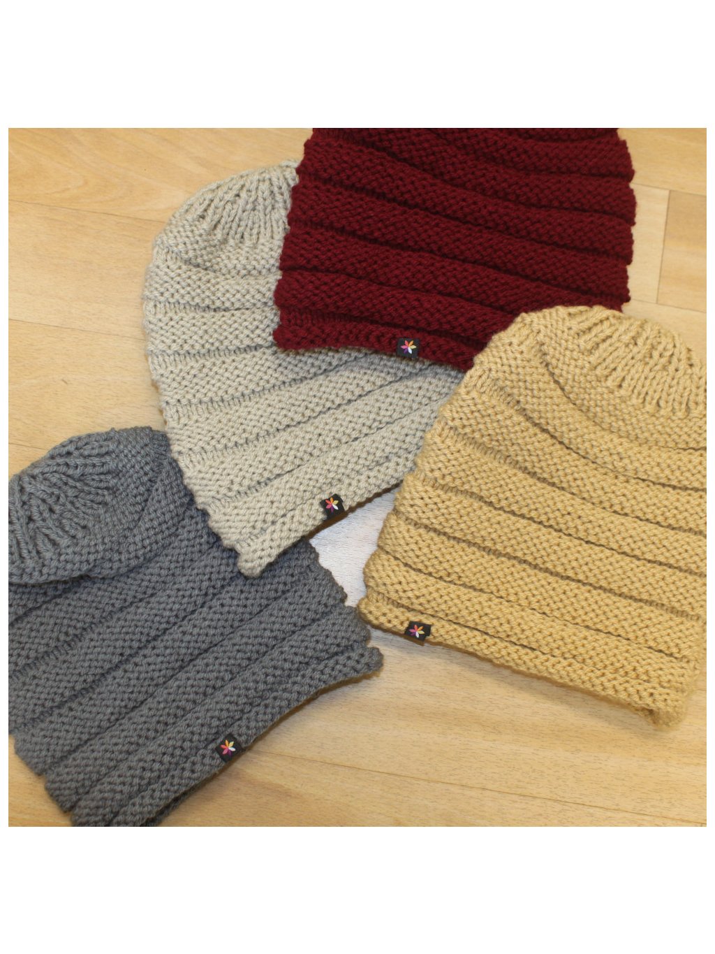 Čepice má náš vlastní střih ve tvaru lehce „přepadlého“ stylu, který jemně splývá na zadní straně hlavy a dává ležérní, ale elegantní vzhled. Lem čepice je zpevněný a krásně drží tvar, a celkový tvar čepice kopíruje hlavu, při tom však ponechává trochu volnosti pro pohodlí. Díky pružnosti pleteniny se čepice přizpůsobí obvodu hlavy.