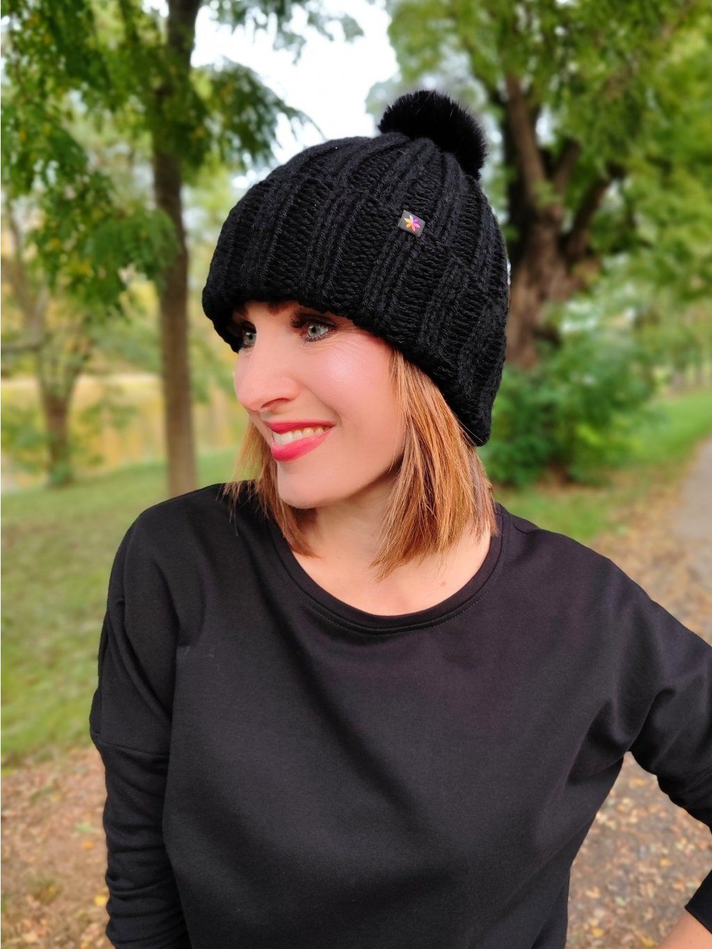 Pletená čepice s bambulí WALK, černá