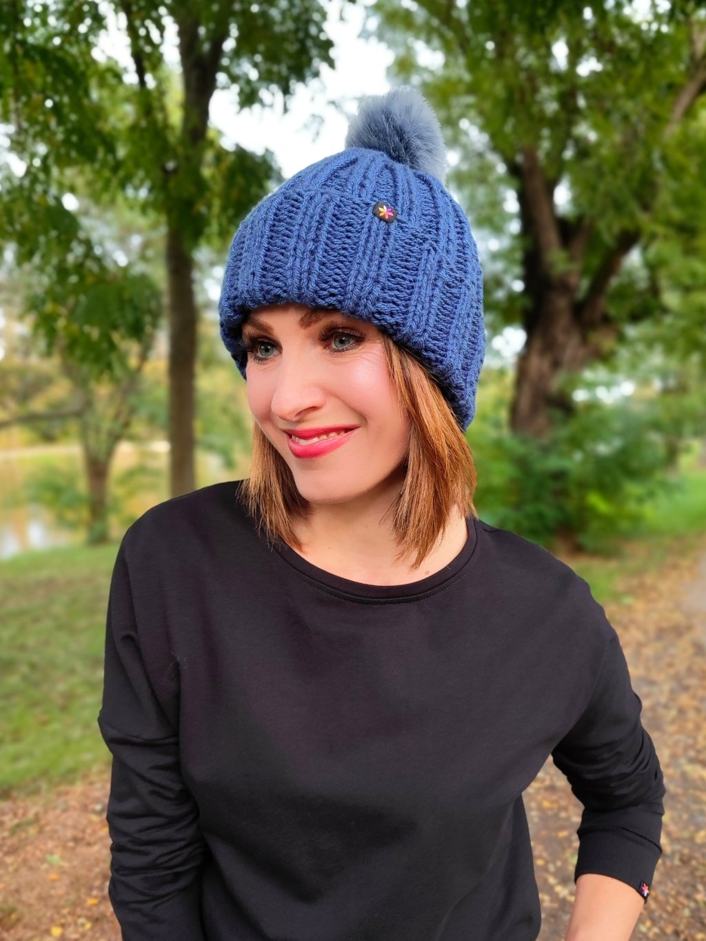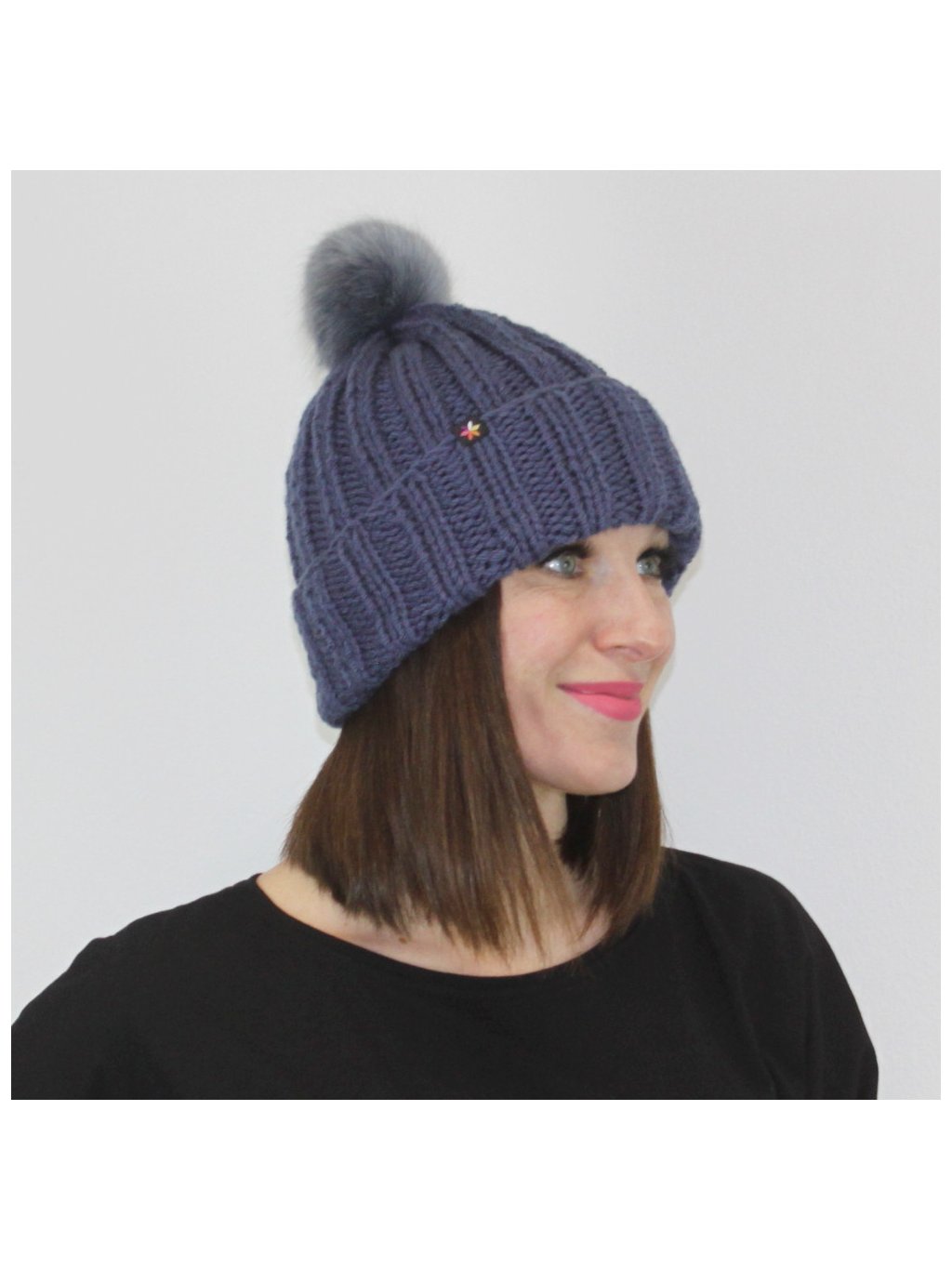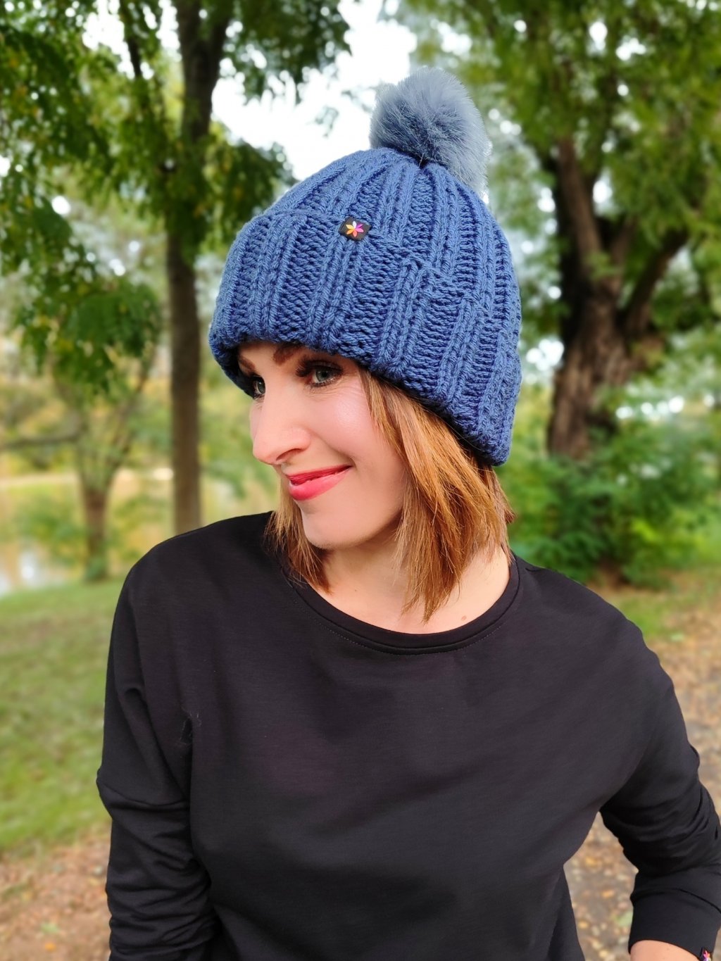 Ručně pletená čepice s bambulí se hodí na zimu. Je teplá, hřejivá.