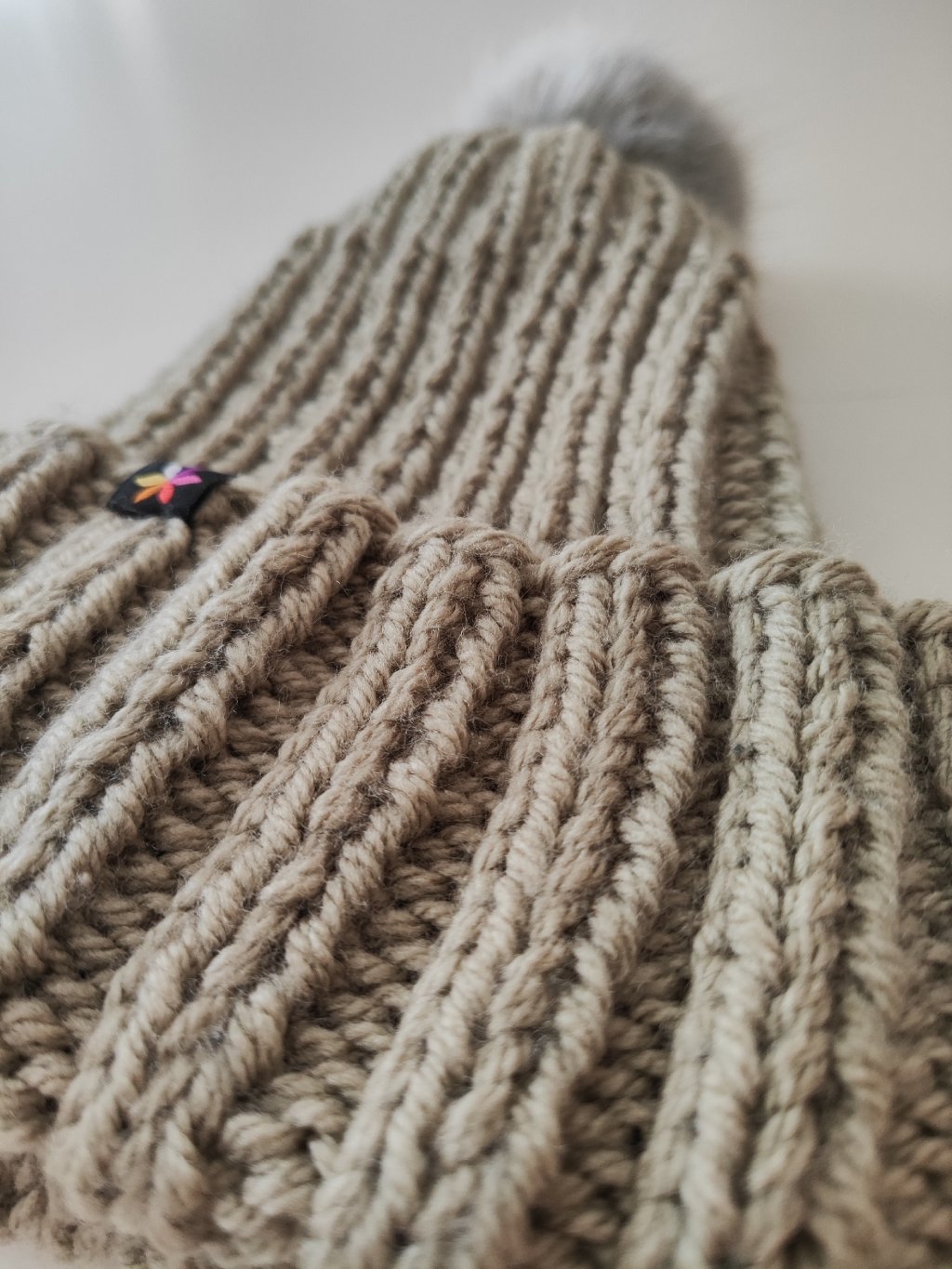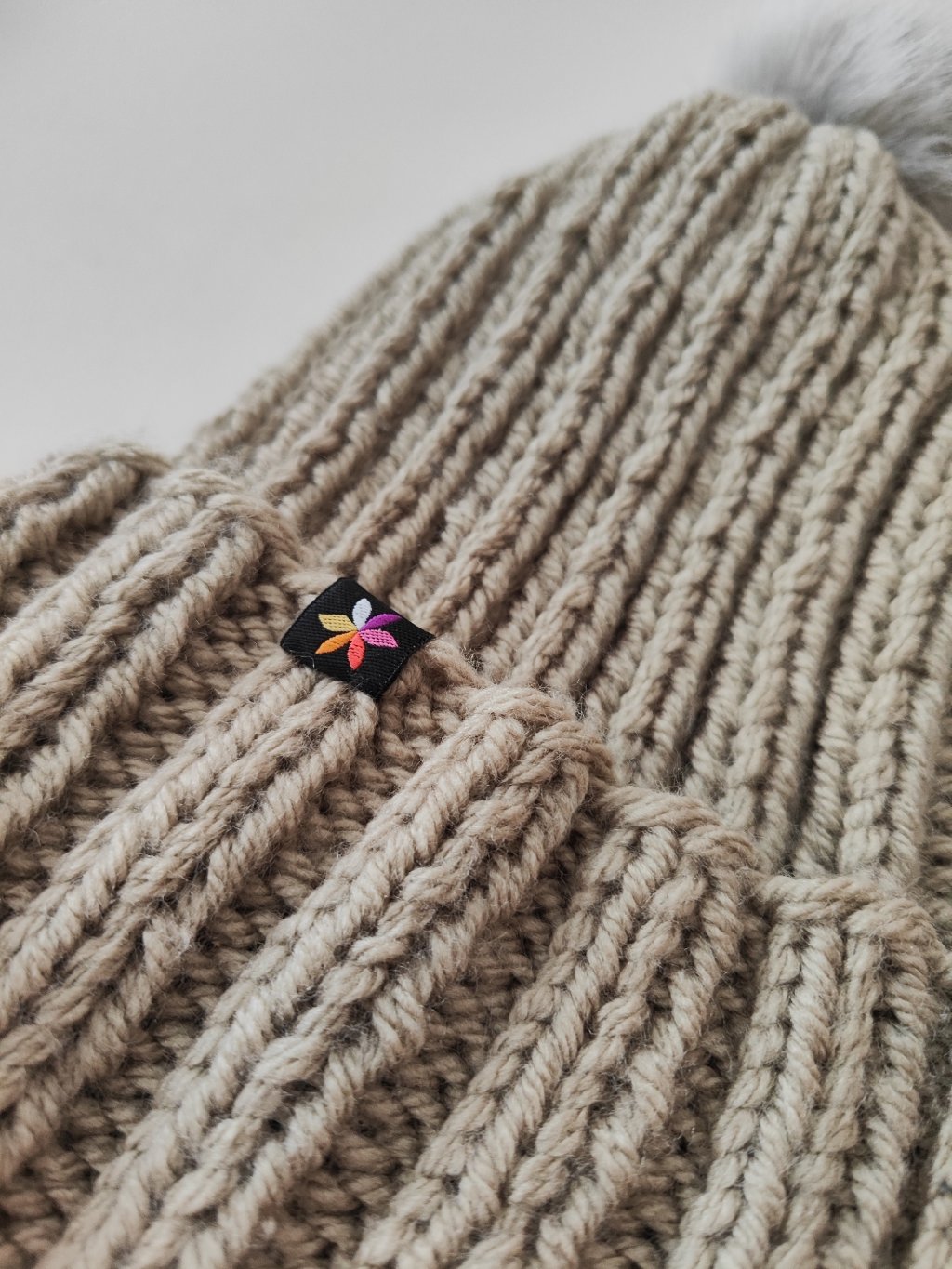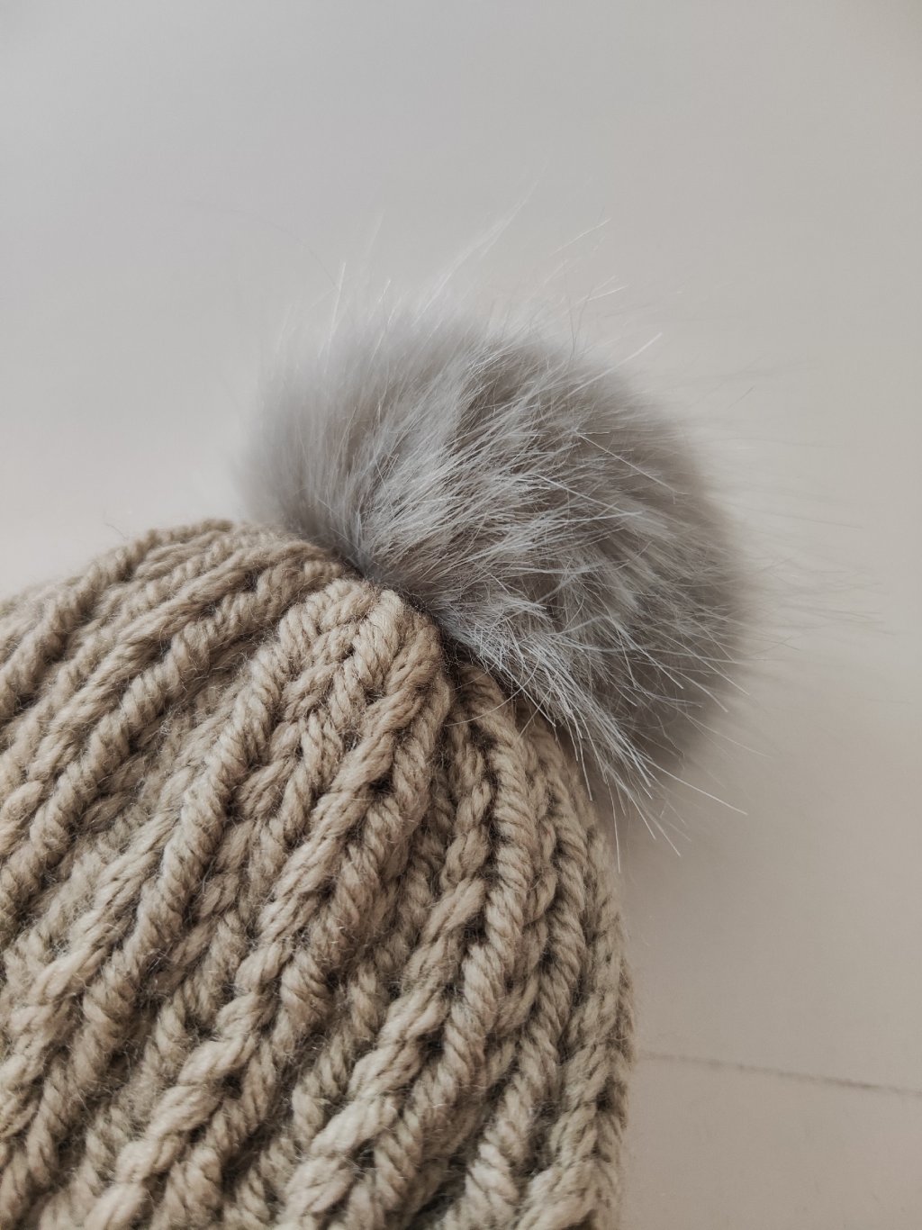 Pletená čepice s bambulí WALK, béžová, šedá bambule