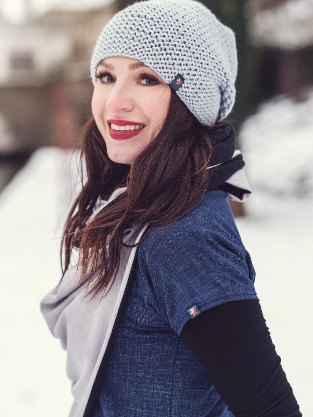 Čepice má klasický, mírně volnější střih, který pohodlně obepíná hlavu, aniž by ji stahoval. Díky hrubšímu pletení drží tvar, ale zároveň působí přirozeně a nenuceně. Lem lze nechat ohrnutý pro hřejivější a kompaktní vzhled, nebo jej nosit volněji pro ležérní styl. Čepice dělá pěkný tvar hlavy, je slušivá.