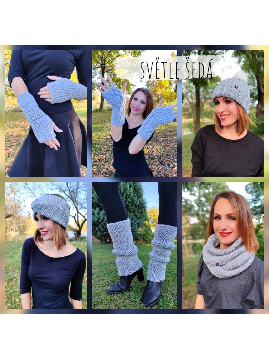 K čepici si můžete vybrat i ručně pletený nákrčník a nebo návleky na ruce ve stejné barvě.