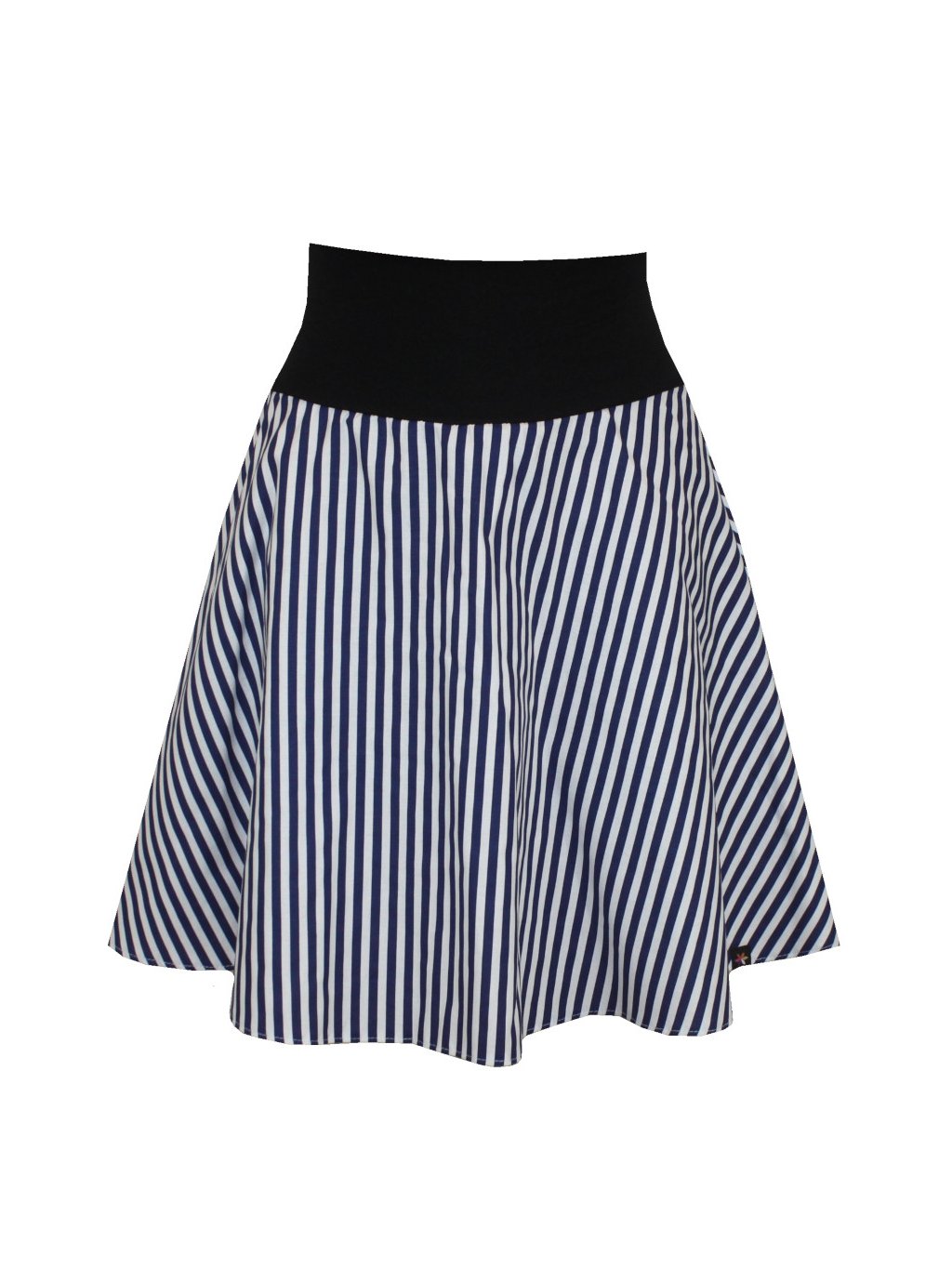 Sukně je z bavlněného plátna české výroby. Proužky jsou cca 0,7 cm široké. Barva: modro-bílé.