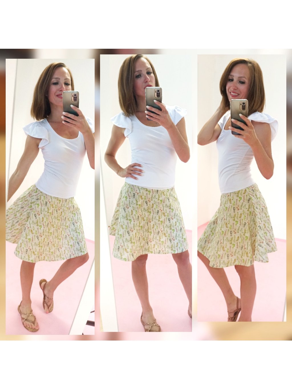 Jak plátěná půlkolová sukně vypadá na postavě se můžete podívat ve videu zde.