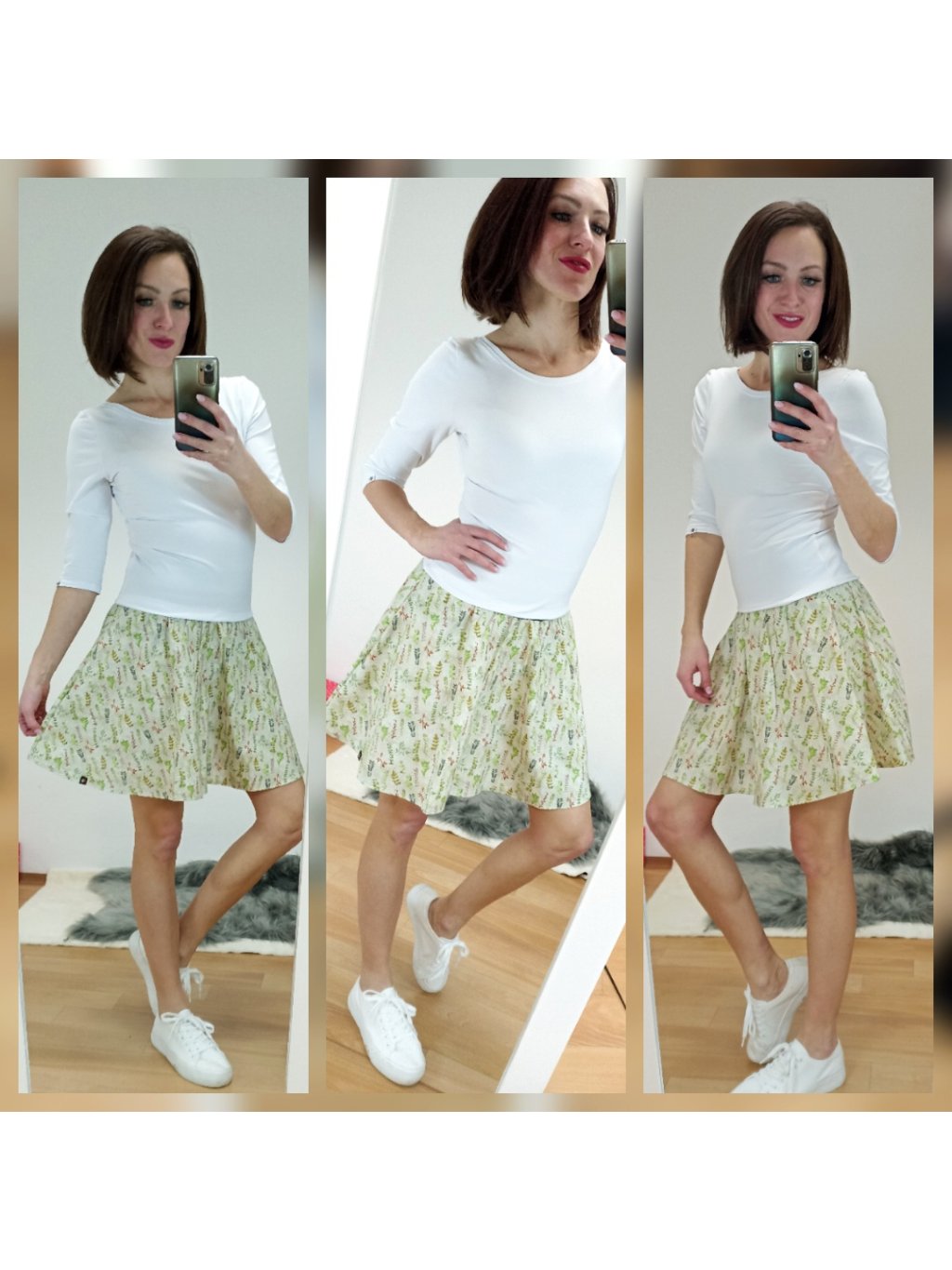 Sukně je půlkolového střihu. Sukně je pohodlná a univerzální.