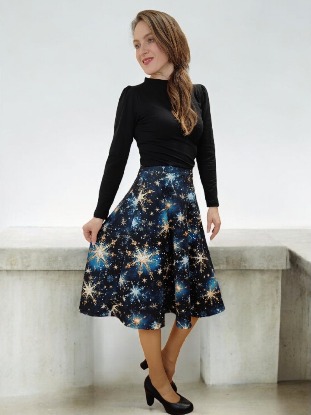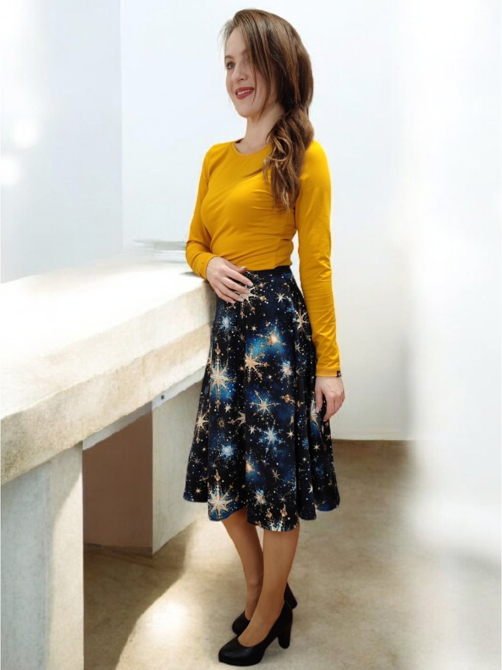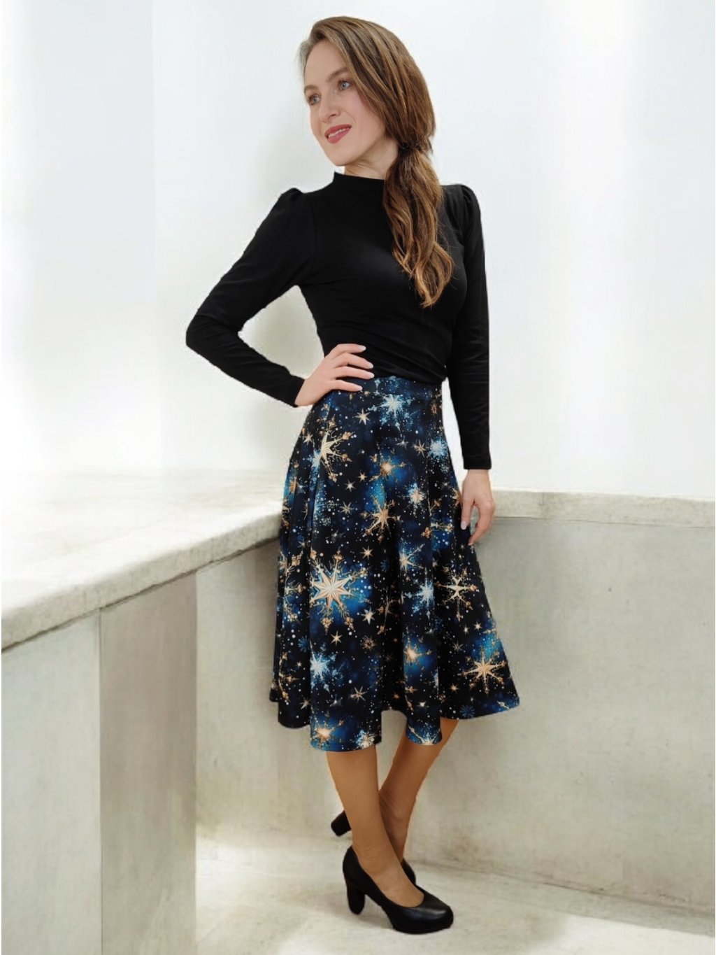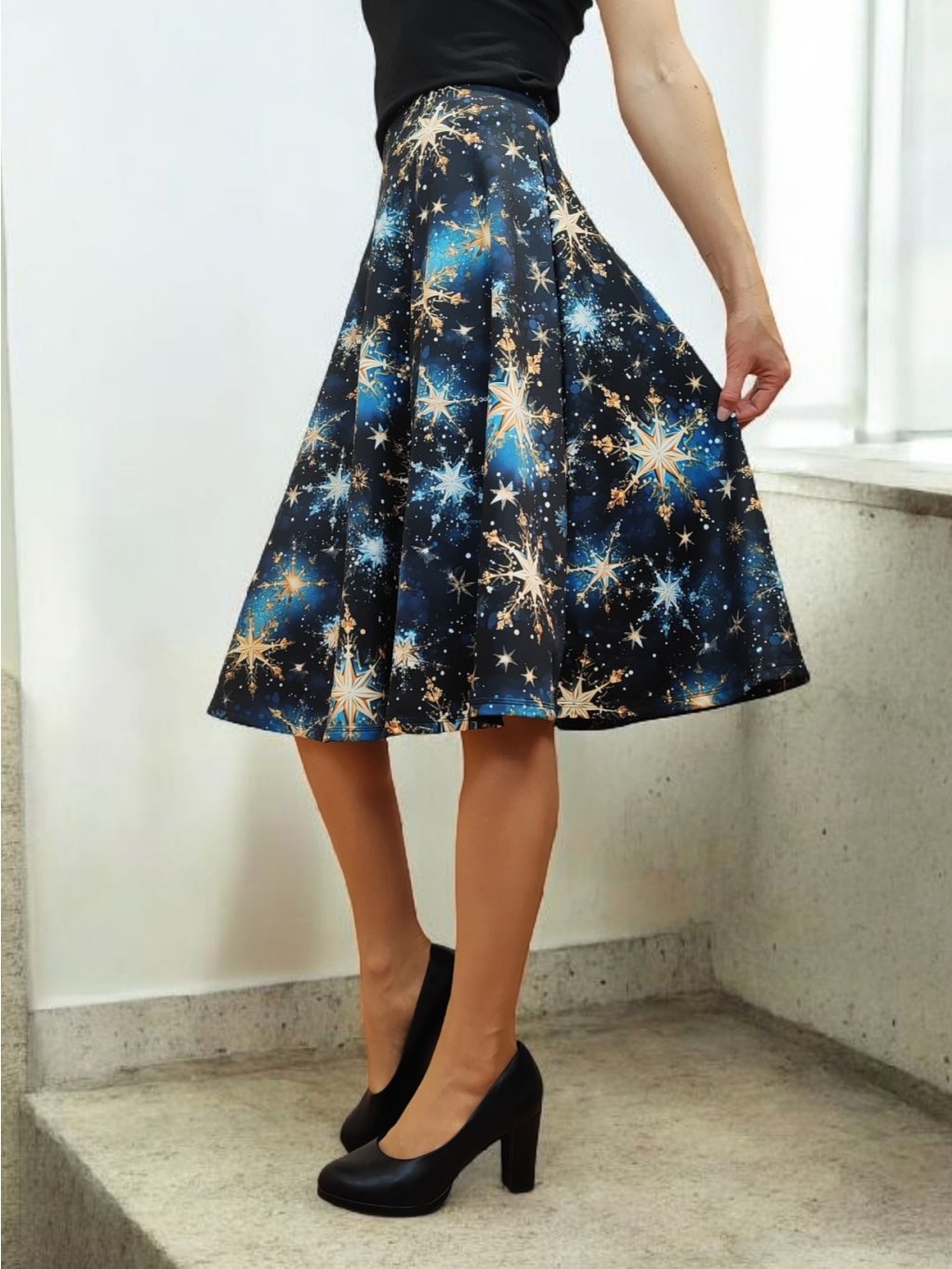 Půlkolová sukně do pasu AGÁTA ke kolenům/ MIDI, Sváteční motiv