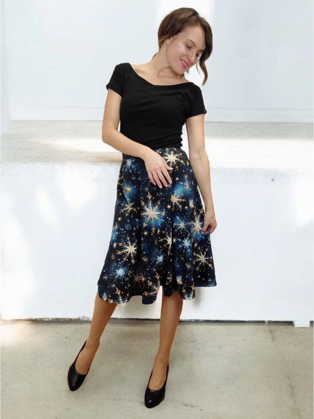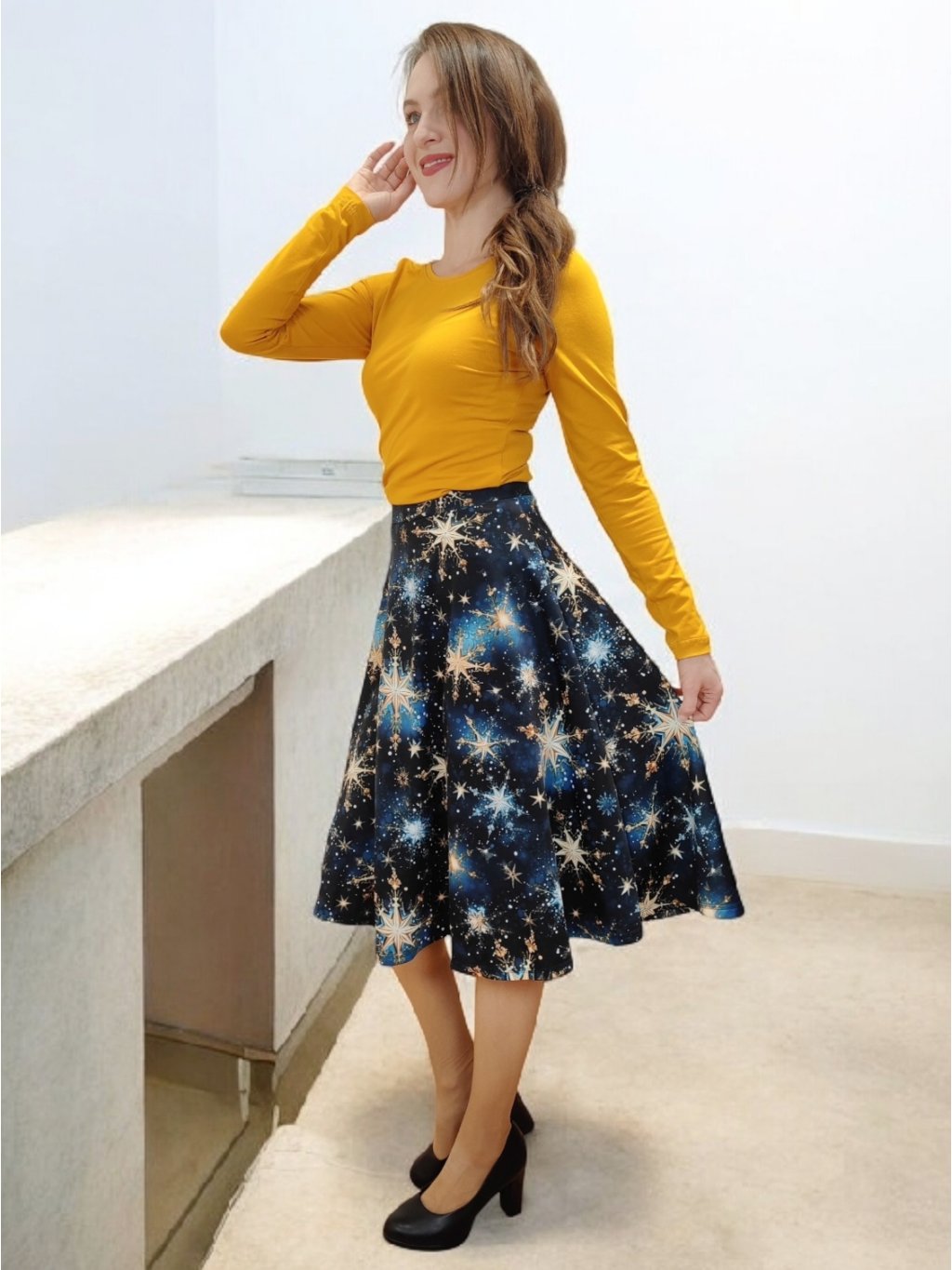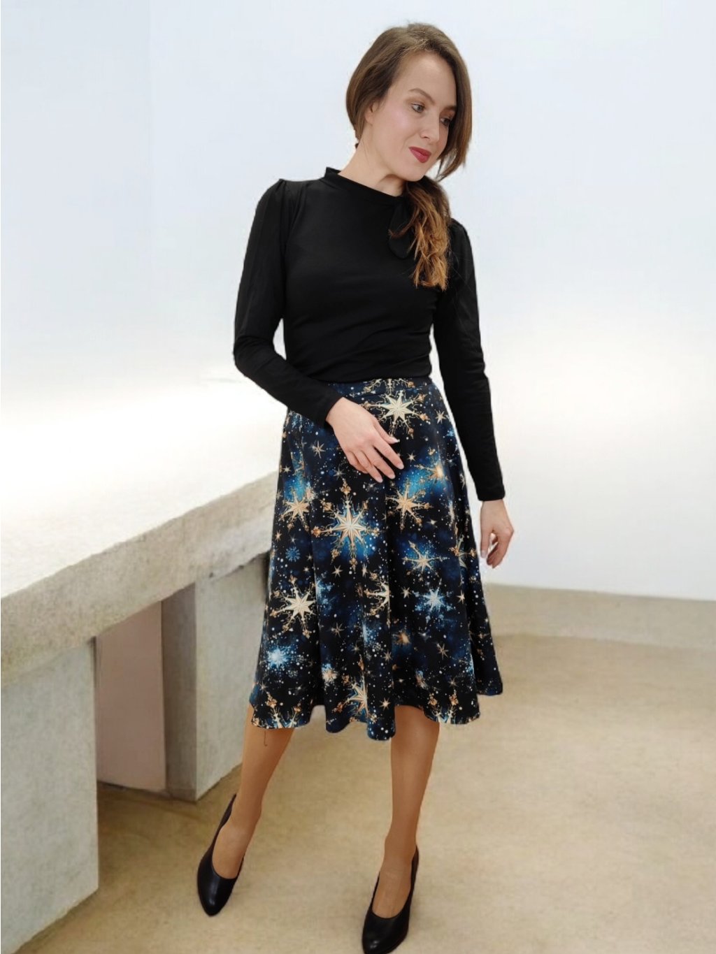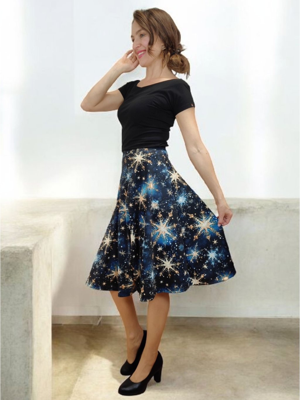 Půlkolová sukně do pasu AGÁTA ke kolenům/ MIDI, Sváteční motiv