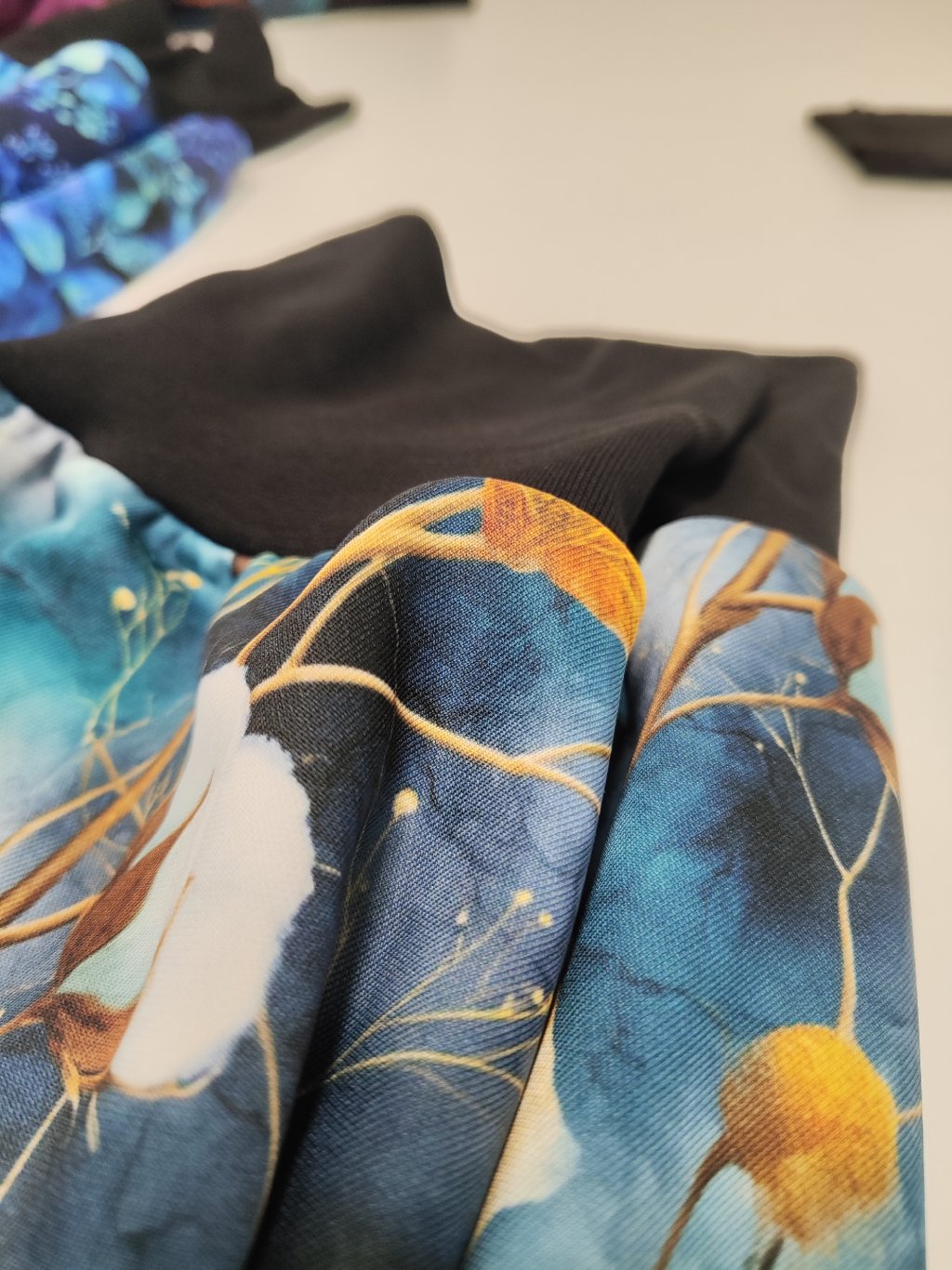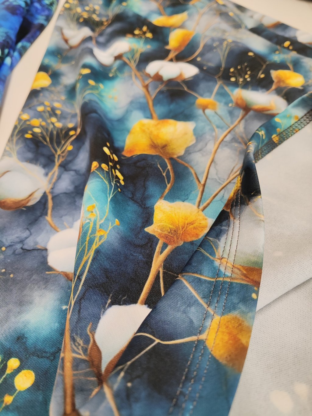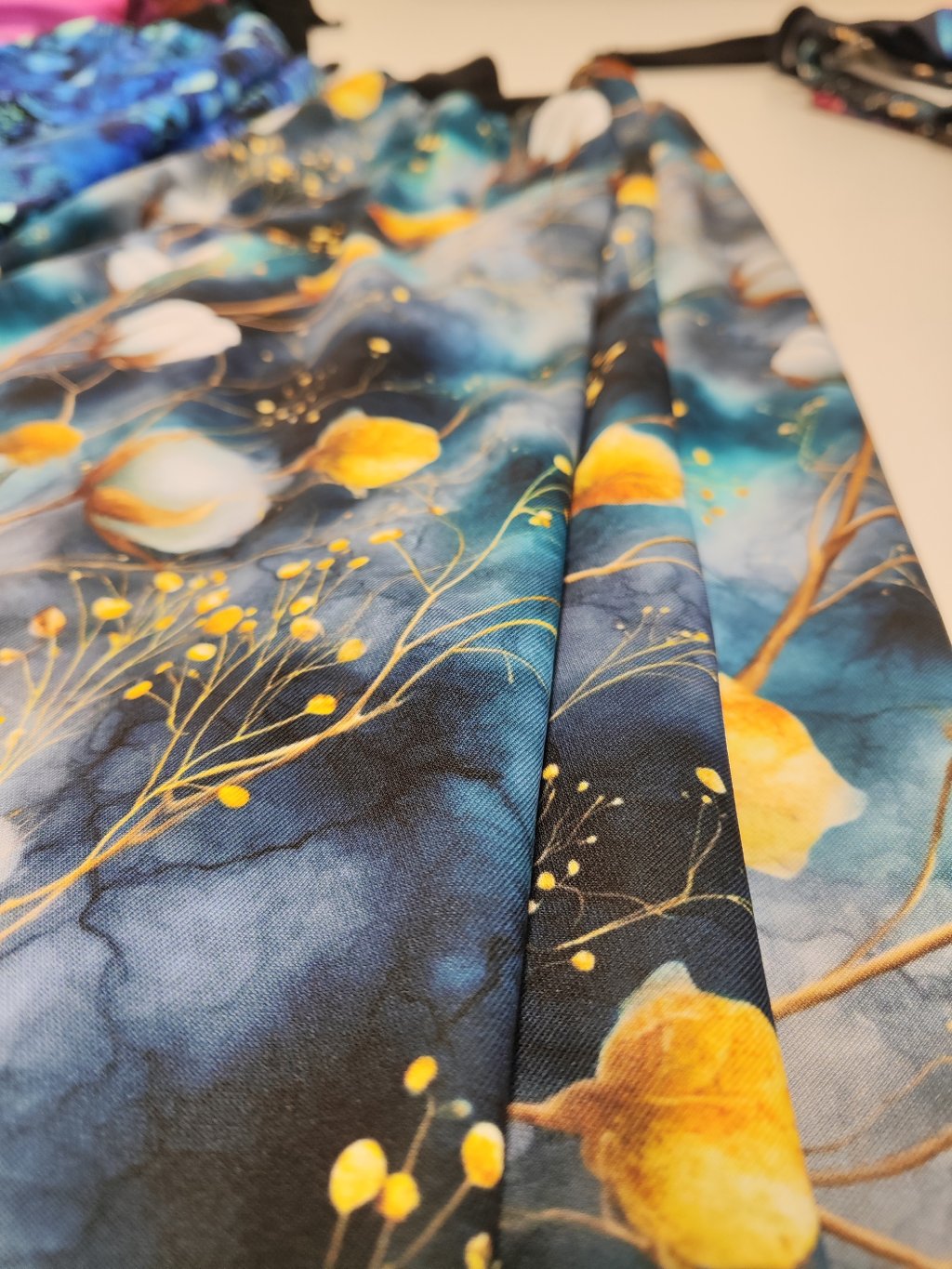 „Mlžné ráno“ – poetická směs tlumených tónů, která připomíná chvíle těsně před rozbřeskem. Barvy se jemně prolínají jako ranní mlha, působí klidně, elegantně a přirozeně. Vzor vynikne jak ve světle, tak v kombinaci s teplejšími doplňky a dodá outfitu nenápadný, ale výrazný půvab.