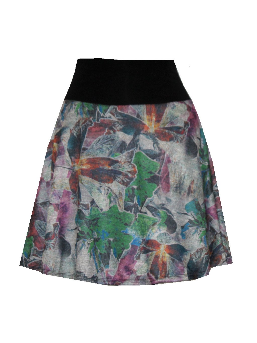 Půlkolová sukně se spodničkou, šedo zelené vzory