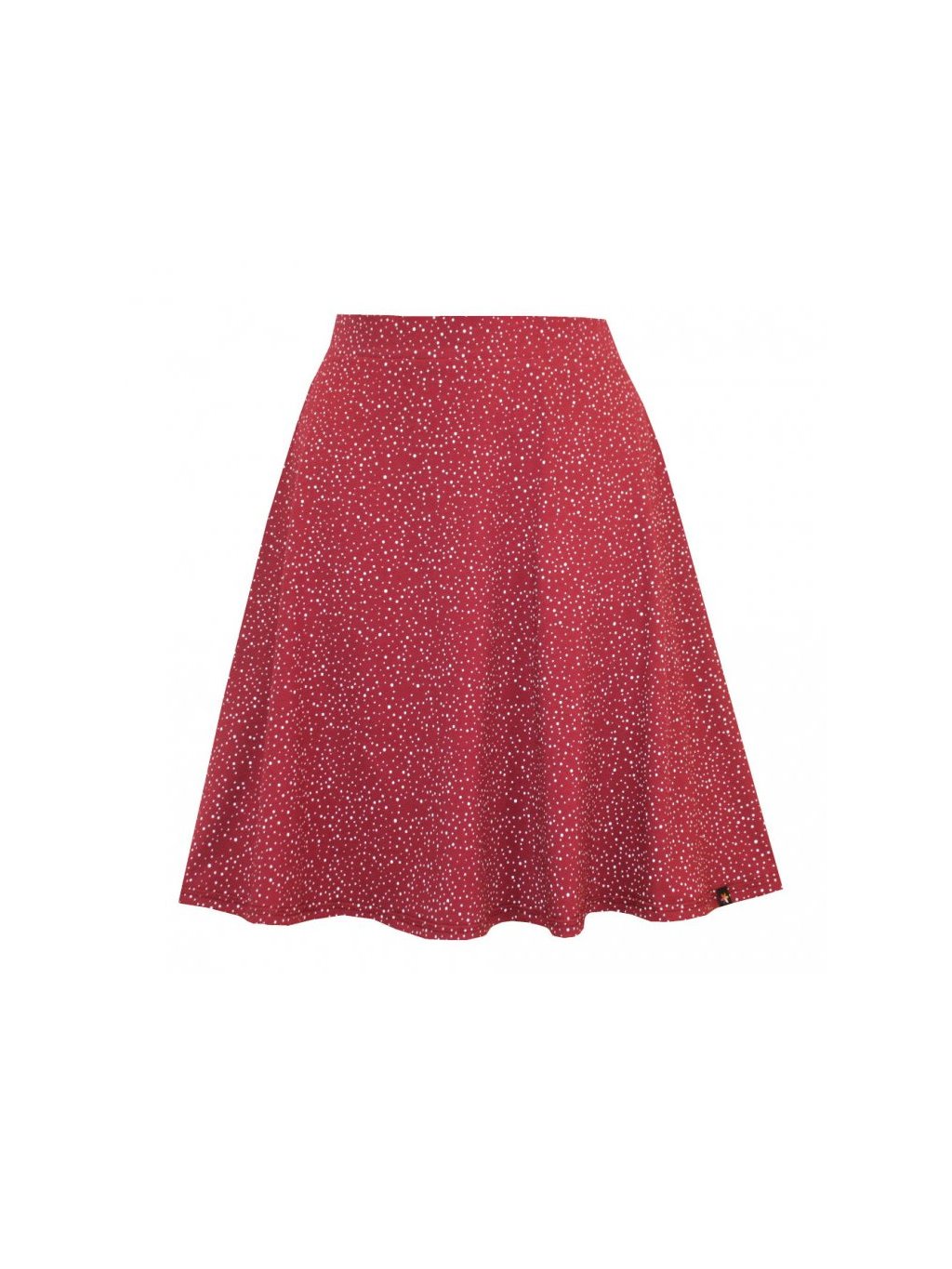 Půlkolová vínově červená sukně do pasu AGÁTA, drobné bílé puntíčky
