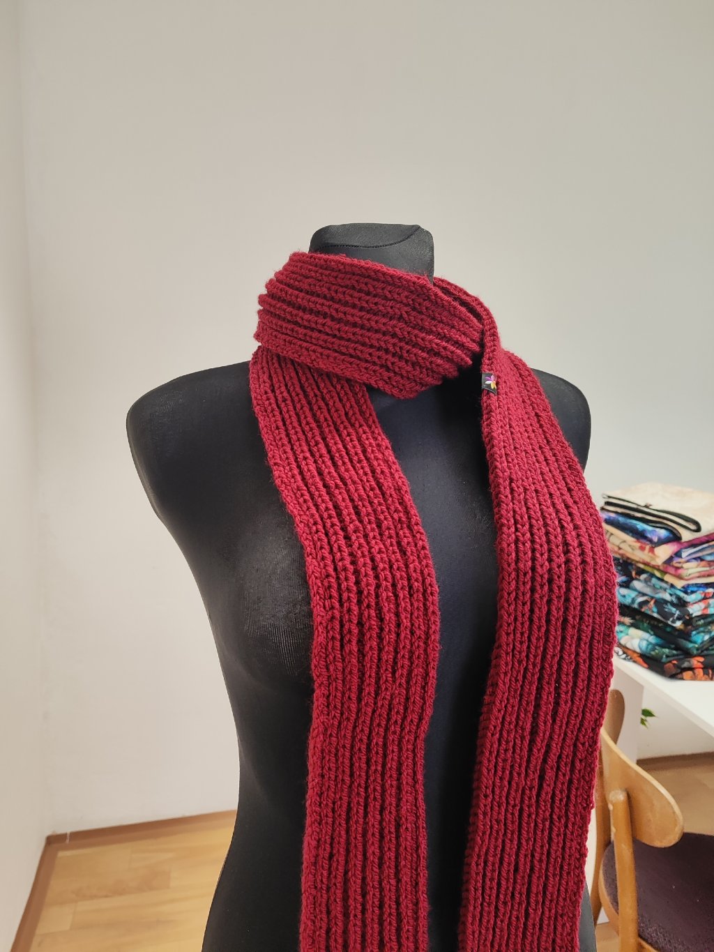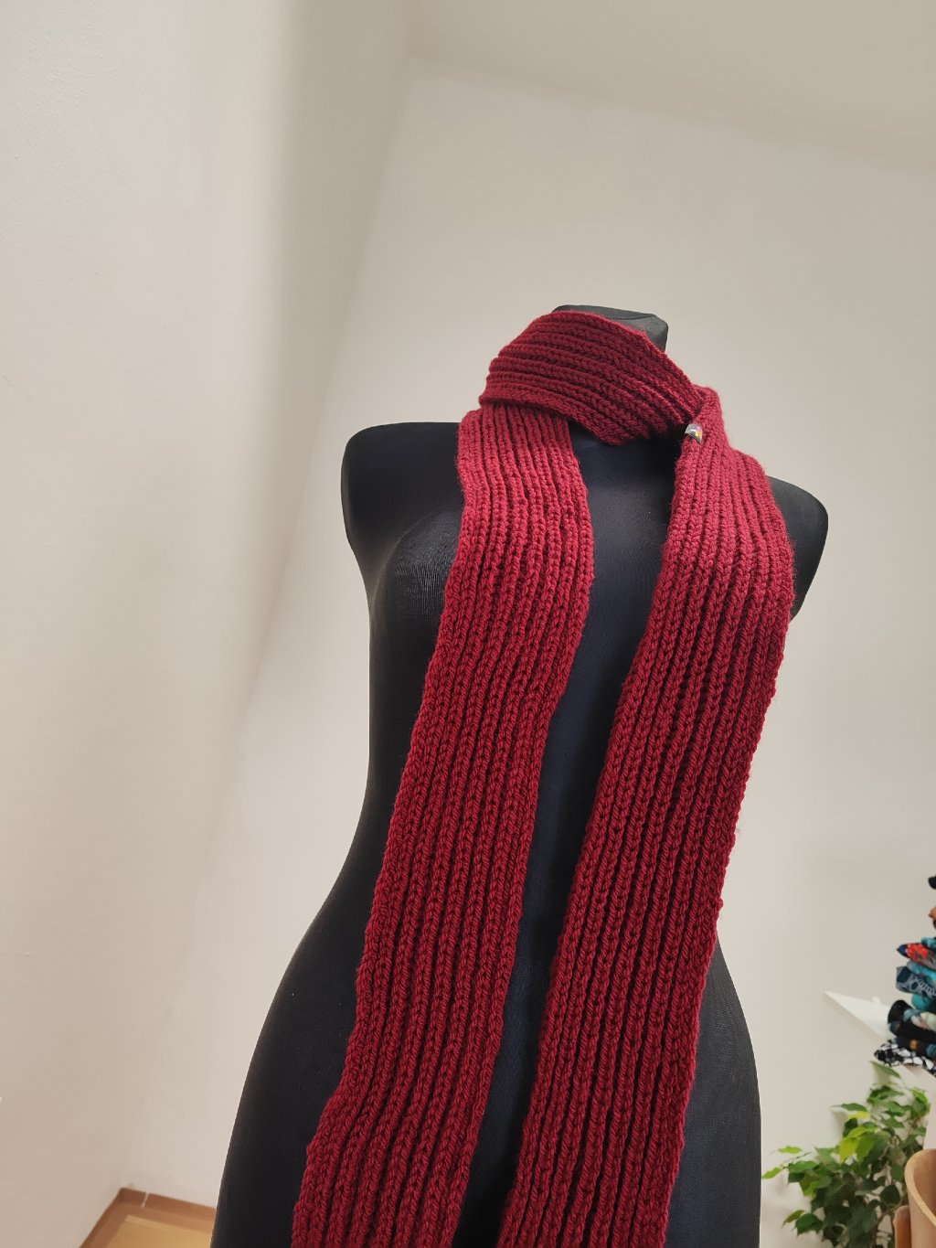 Dlouhá délka 240 cm umožňuje nespočet způsobů nošení – elegantně omotanou kolem krku, uvolněně přehozenou přes ramena nebo svázanou do ležérního uzlu. Krásně doplní zimní kabát, pletené šaty i vlněné sako. Vínová barva vynikne v kombinaci s černou, béžovou či smetanovou a dodá vašemu outfitu špetku noblesy.