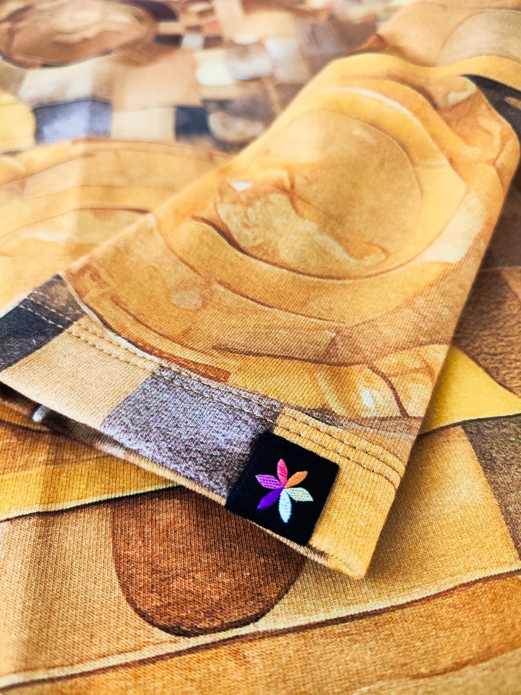 Materiál je silnější bavlněný úplet- jednolícní s digitálním tiskem. 95% bavlna / 5% elastan.