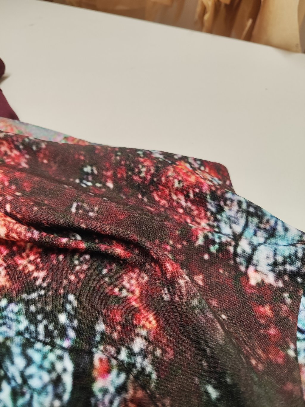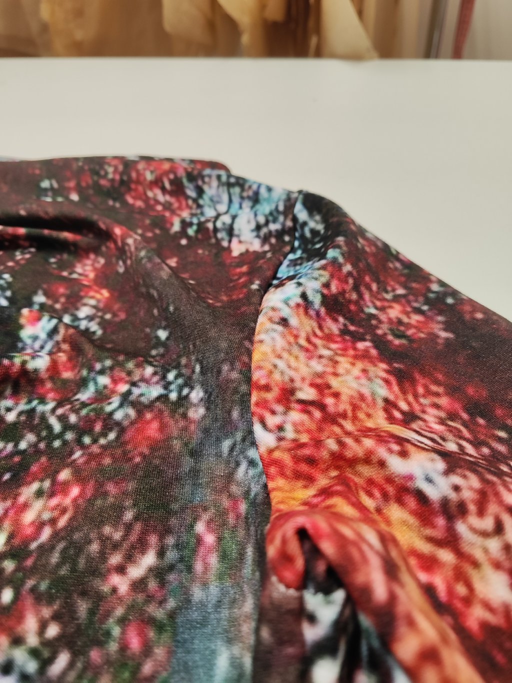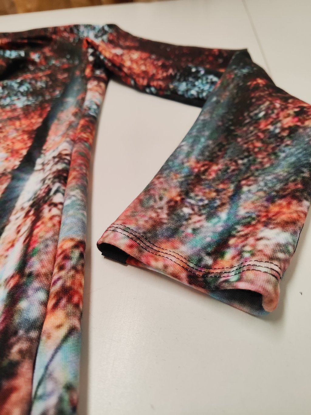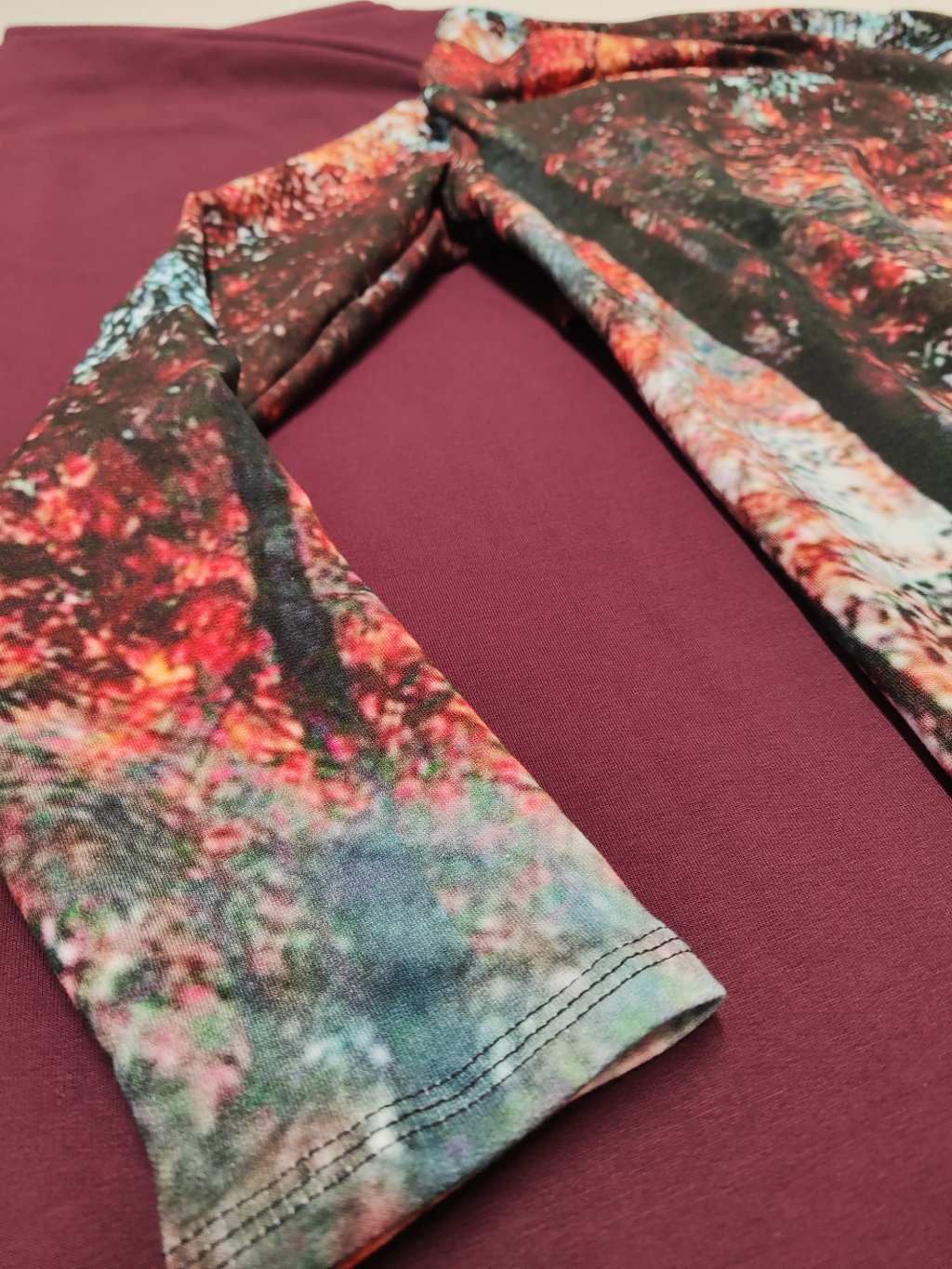 Motiv lesa působí klidně a zároveň tajemně – jako podzimní procházka mezi stromy, kdy listí šustí pod nohama. Barevné tóny lesa dodávají šatům hloubku a originalitu, takže působí opravdu výjimečně.