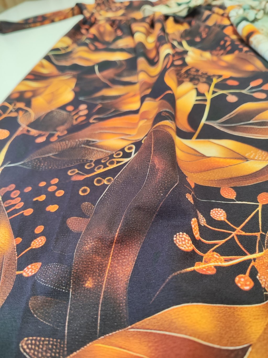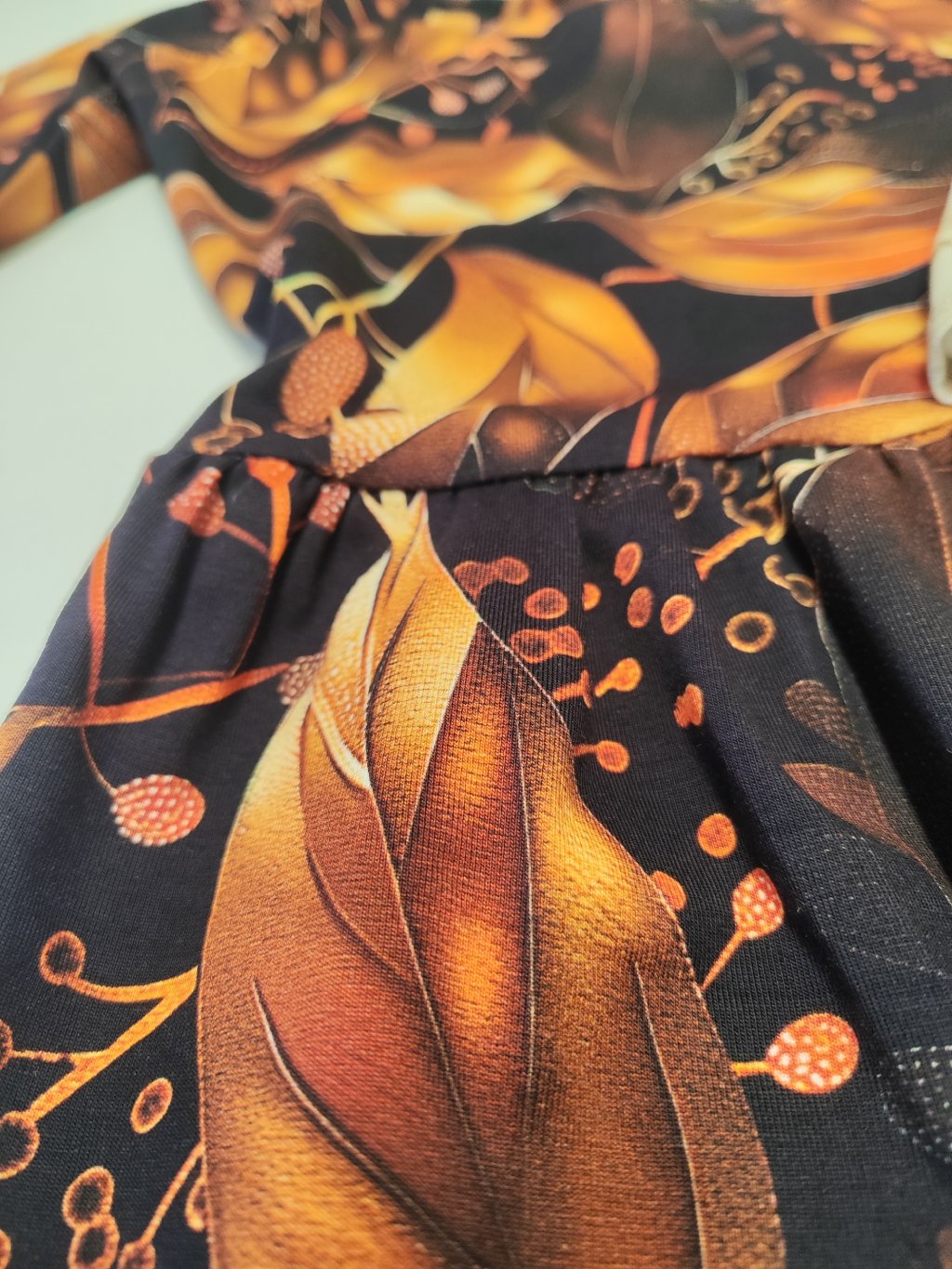 Motiv Podzimní listí v jemných podzimních tónech připomíná padající listy a klidné podzimní dny. Barvy působí romanticky a jemně, přitom zůstávají nadčasové. Kombinace vzoru a bavlněného materiálu vytváří pocit lehkosti a pohodlí při každém pohybu. Tyto šaty jsou ideální pro podzimní dny, kdy chcete vypadat elegantně a cítit se přitom pohodlně.