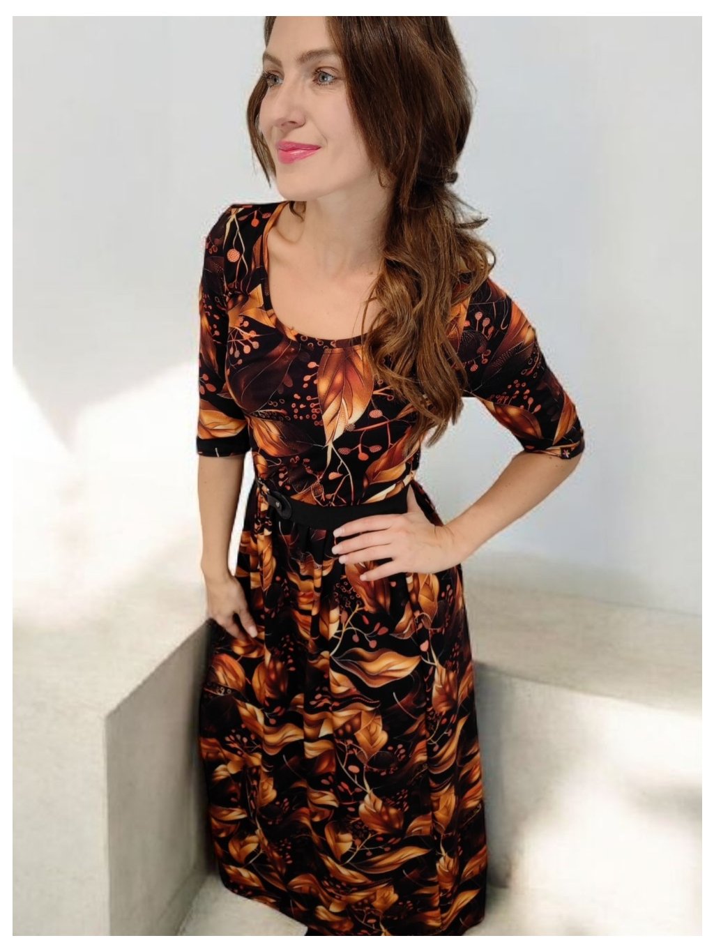 Šaty THYMIA jsou ideální pro ženy, které hledají pohodlný a stylový kousek do práce, na procházku či posezení s přáteli. Díky volbě délky sukně a rukávů si můžete vytvořit outfit přesně podle svého stylu. Lze nosit do pasu i na boky, podle toho, co preferujete. Podzimní motiv listí je skvělý pro kombinaci s kabátkem, svetrem a různými typy bot.