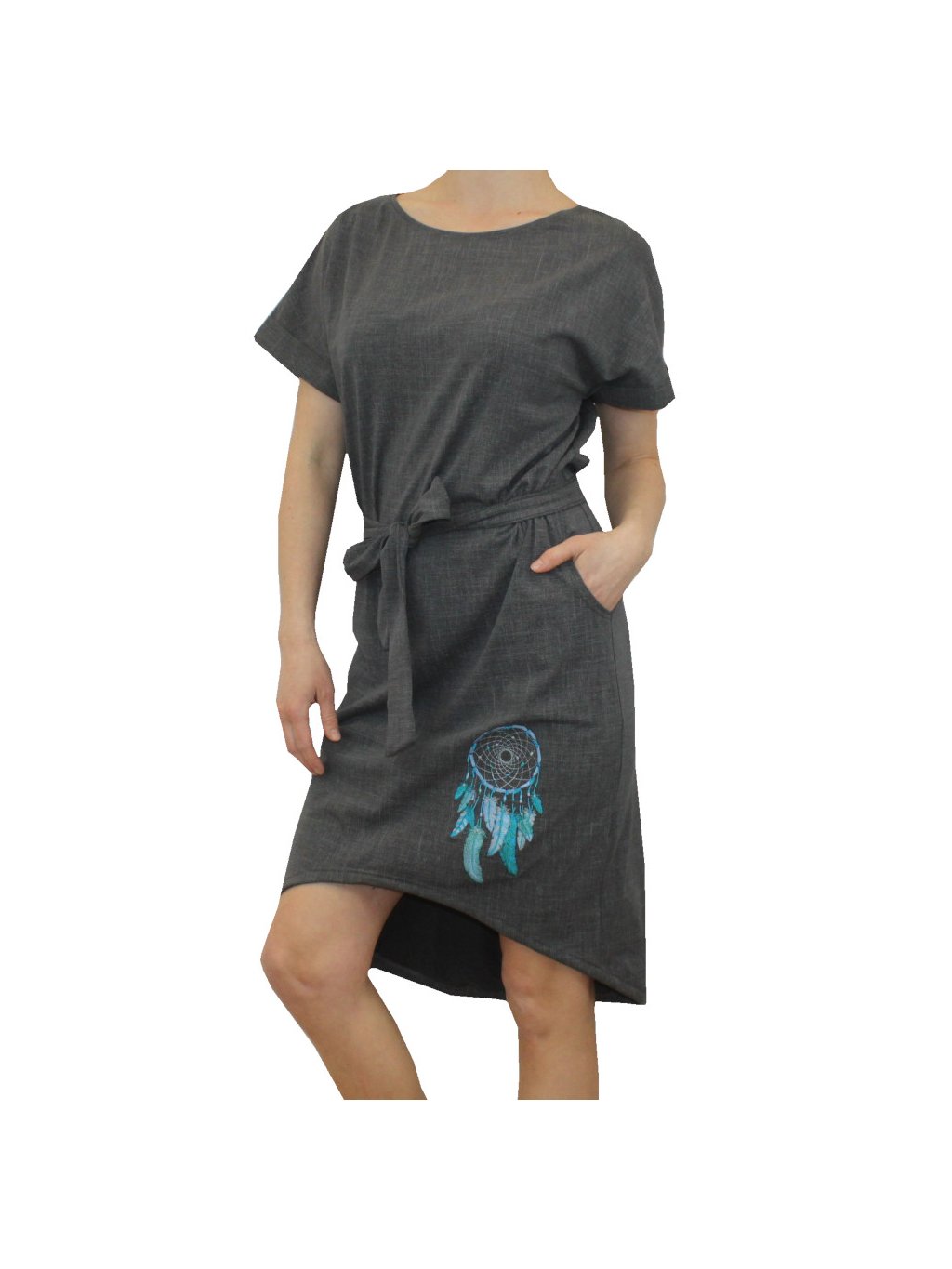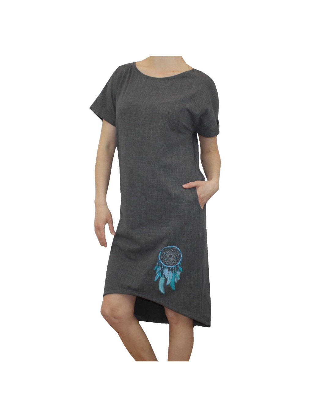Šaty volného střihu, vzhled džínoviny, mašle na zadním dílu, kapsy, pásek, lapač snů
