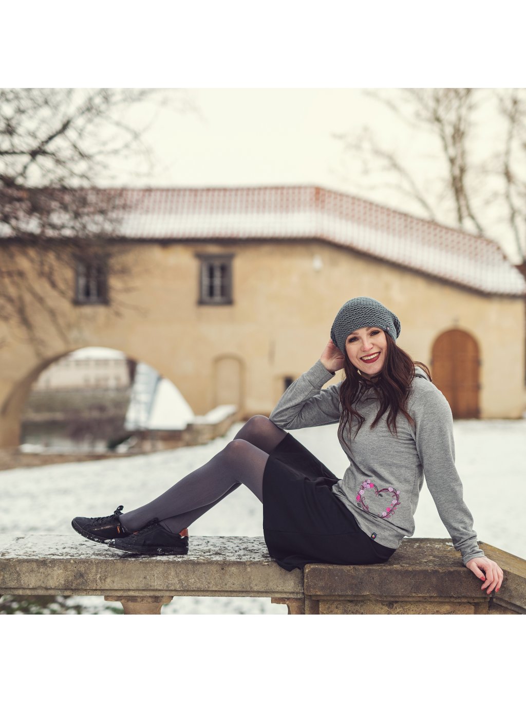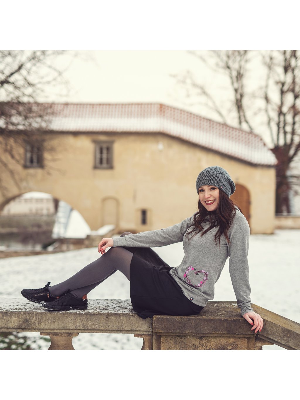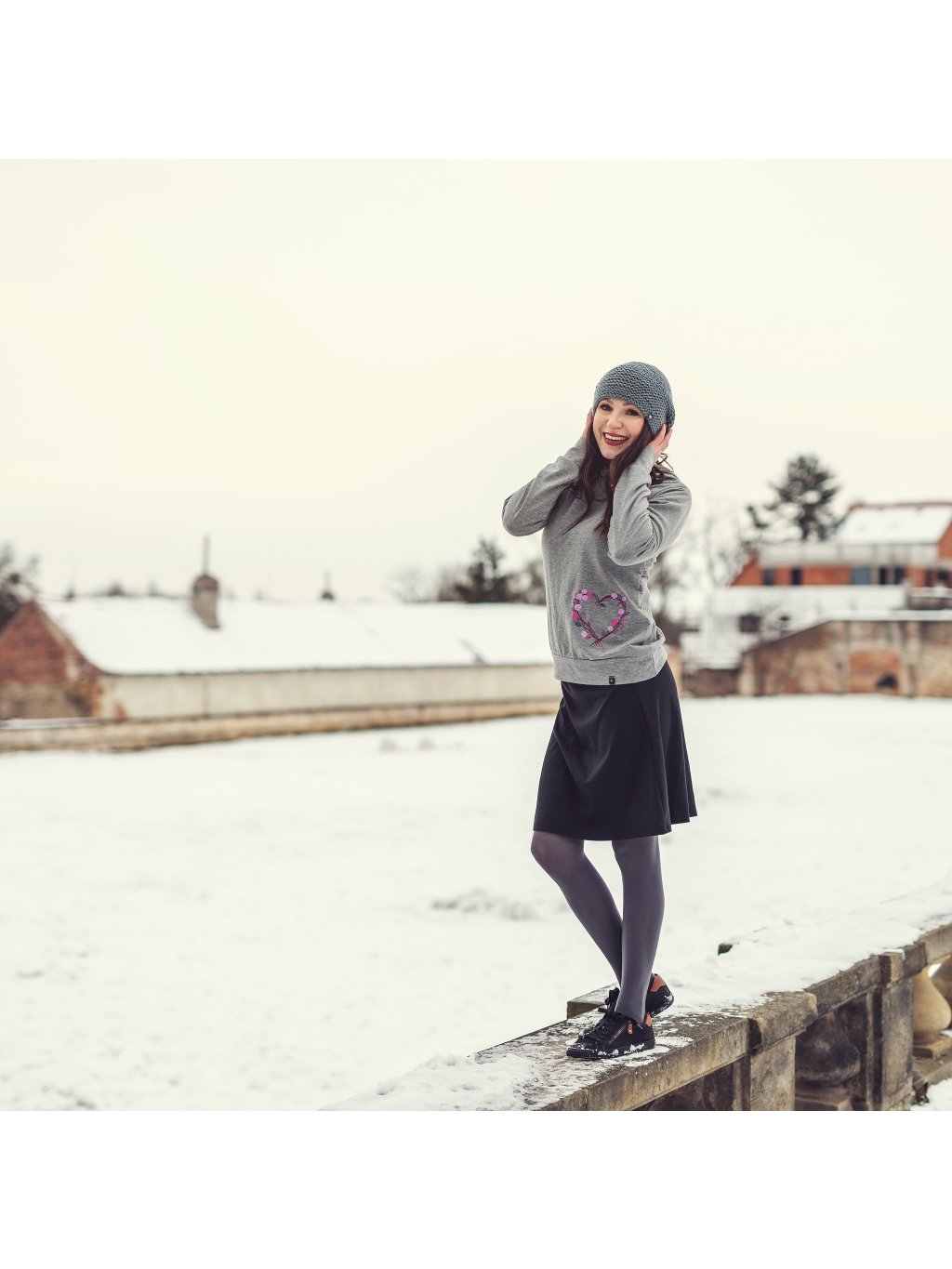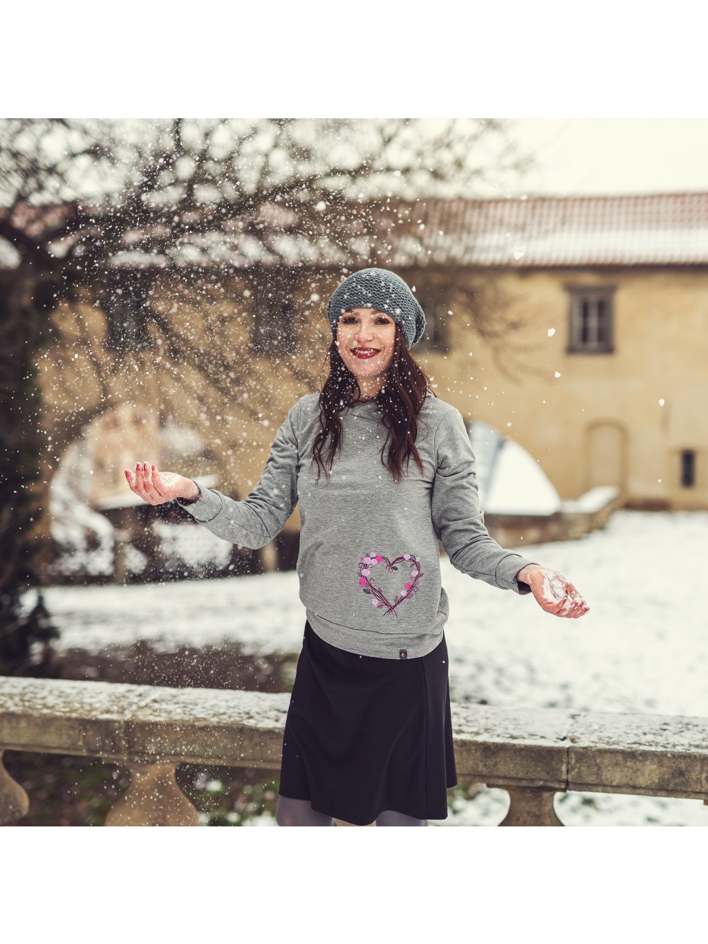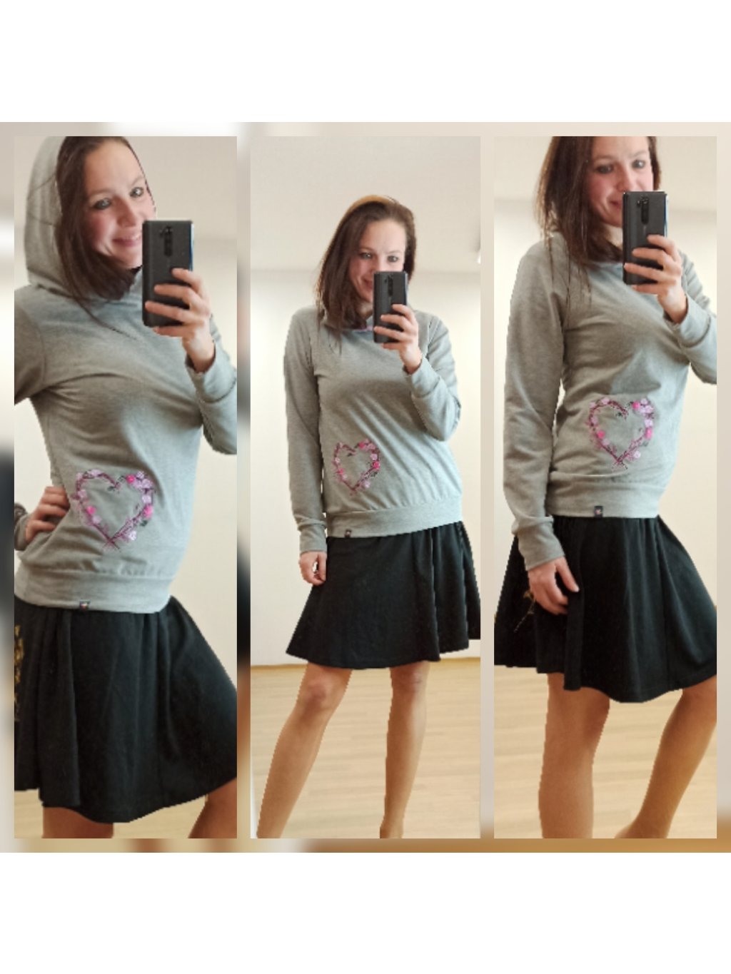 Šedá mikina s kapucí, srdce