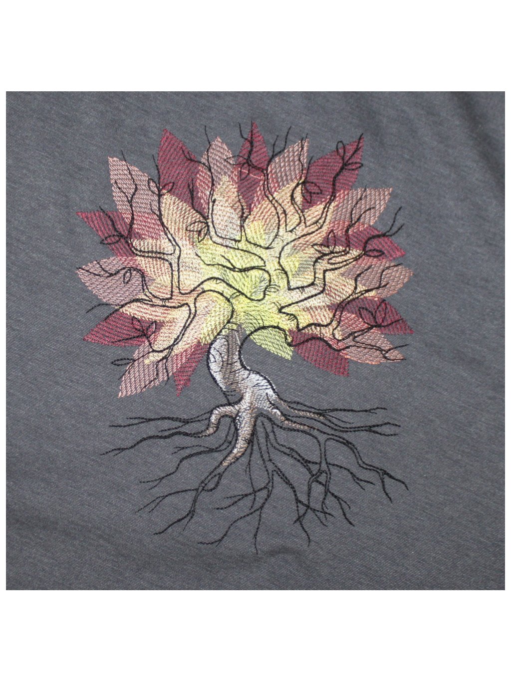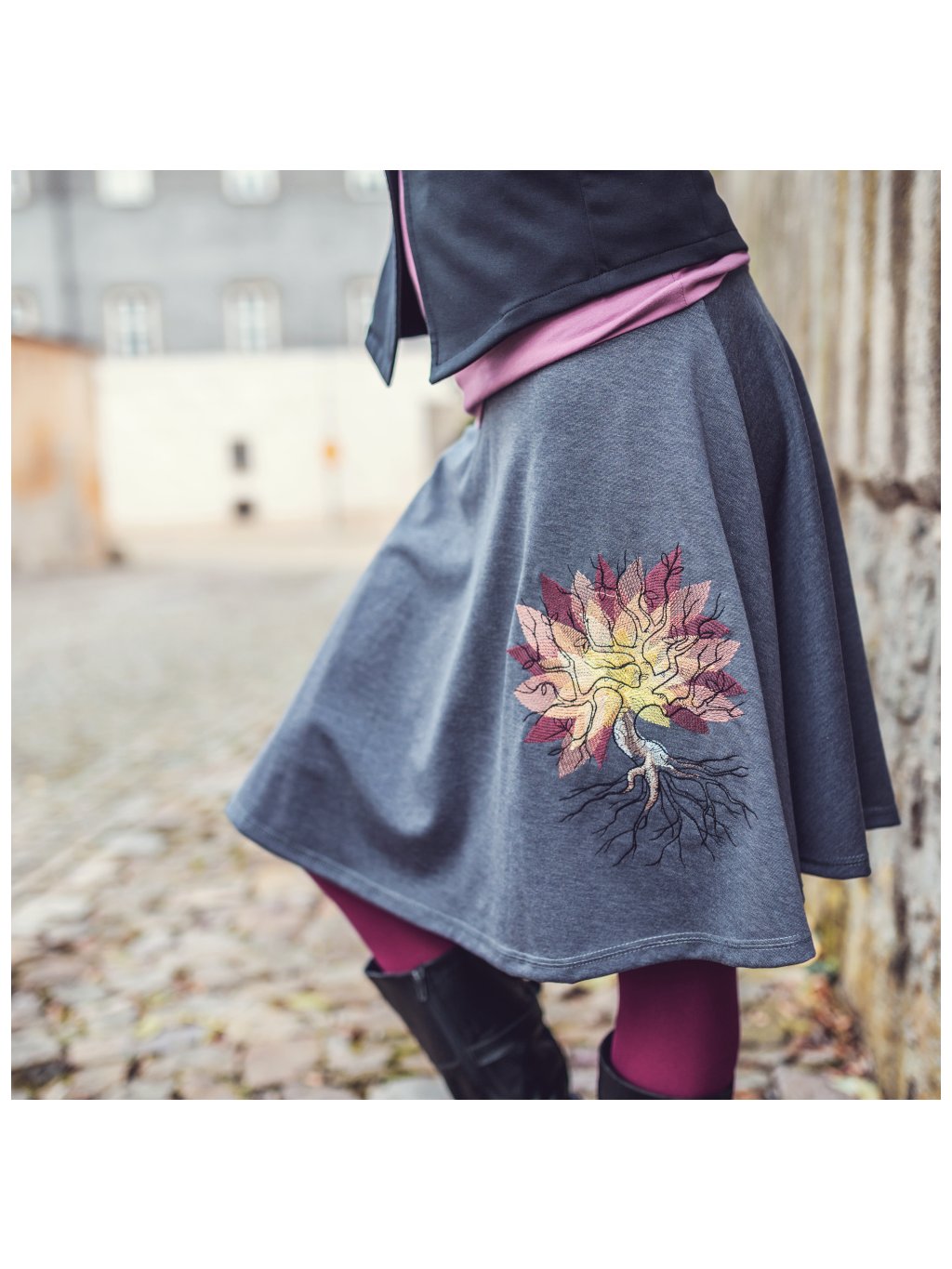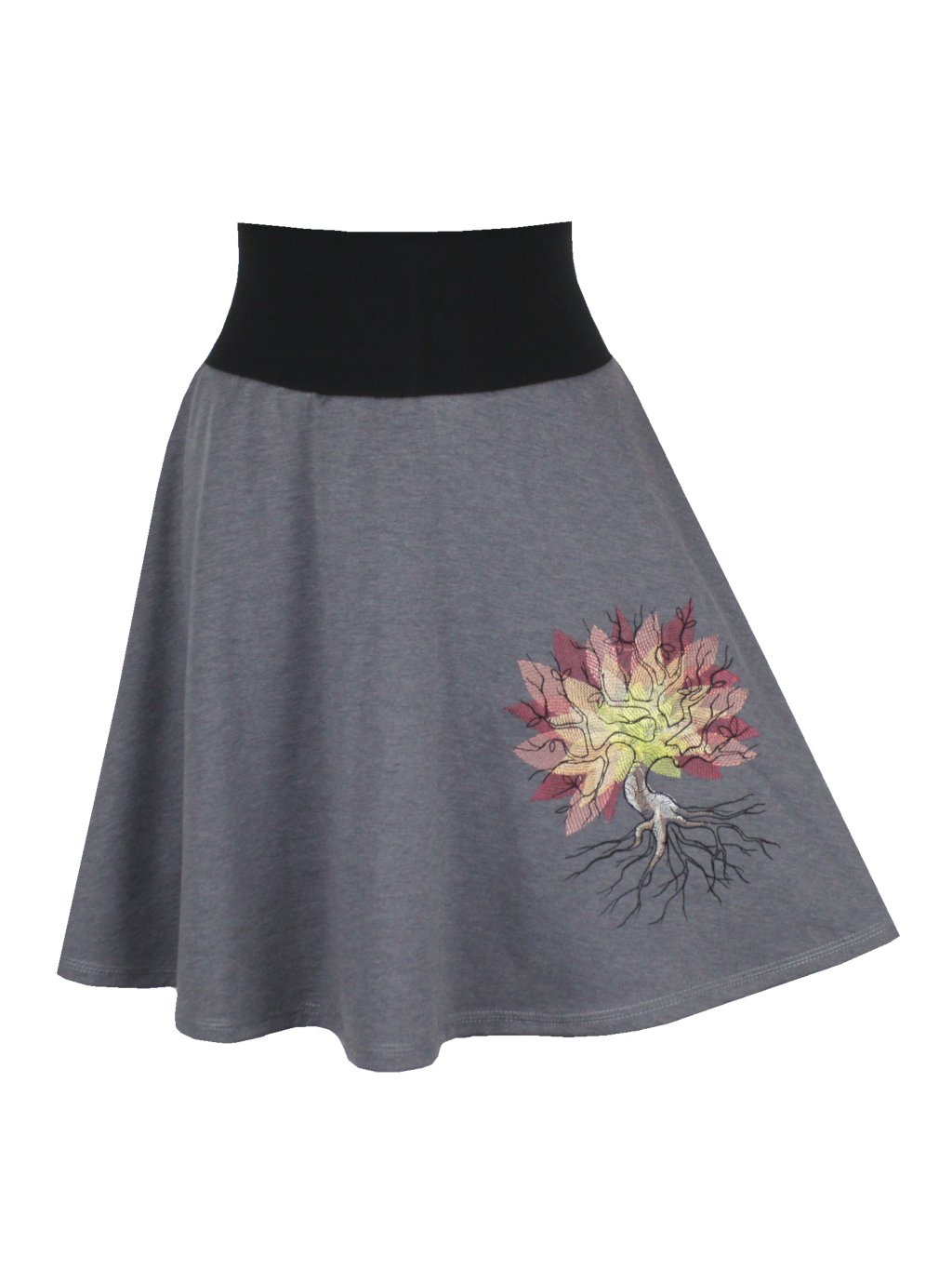 Na boku sukně je vyšitý obrázek - vícebarevný strom. |