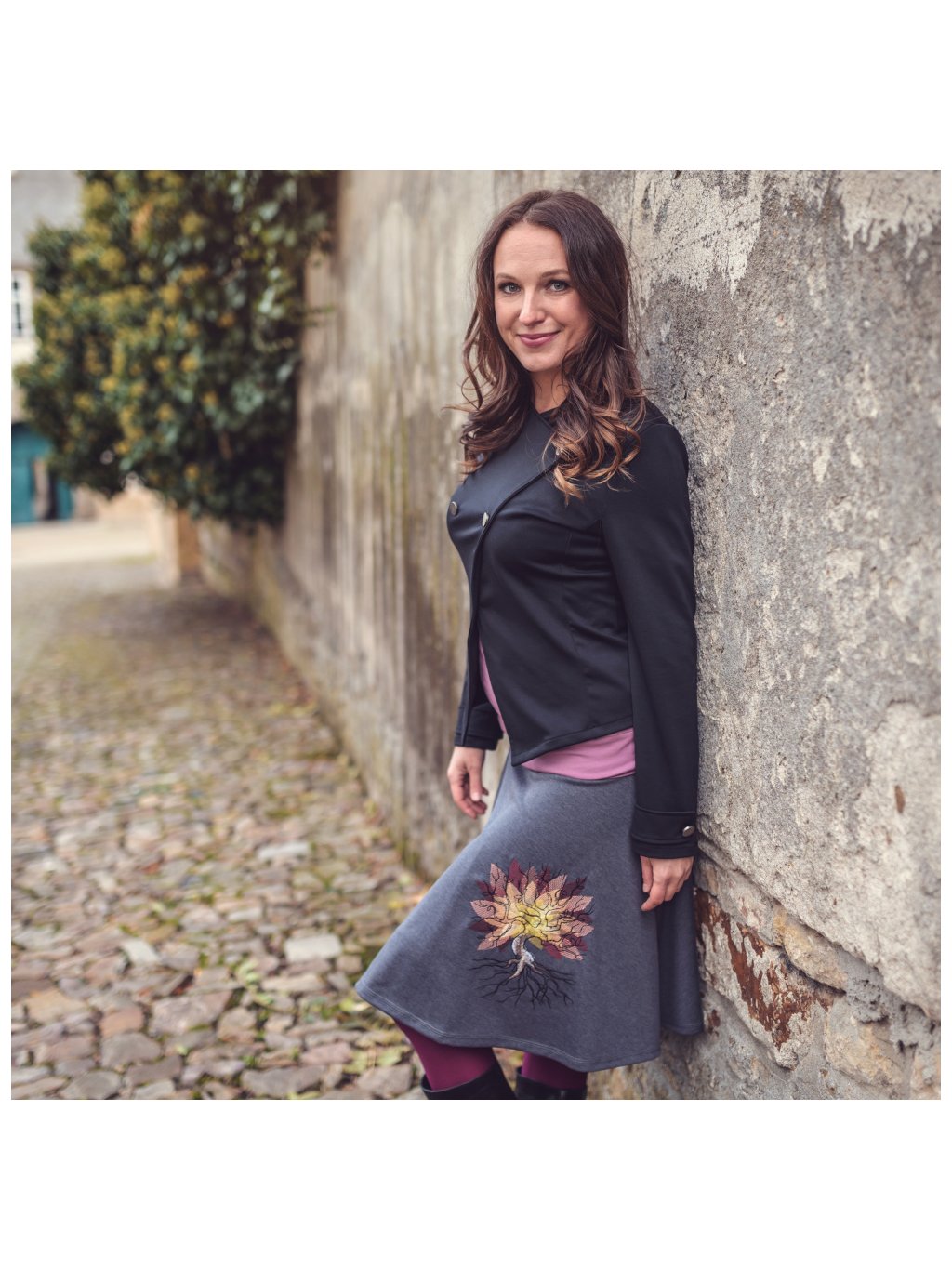 Sukně je vhodná, díky výšivce především na podzim. Materiál středně silný.