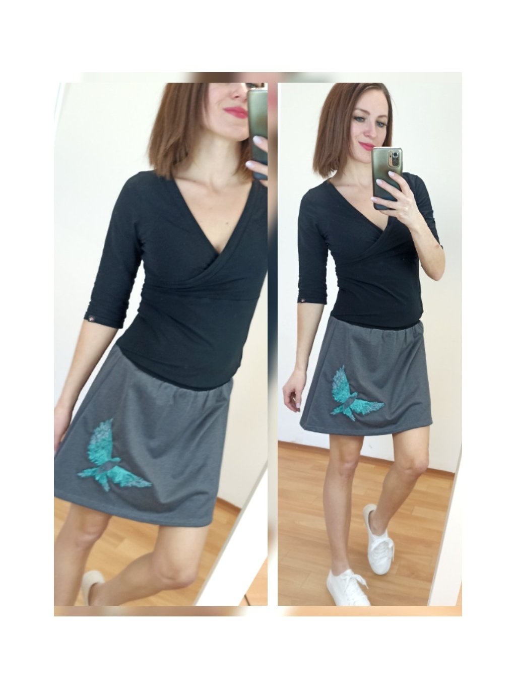 Šedá sukně do áčka se spodničkou, vlaštovka