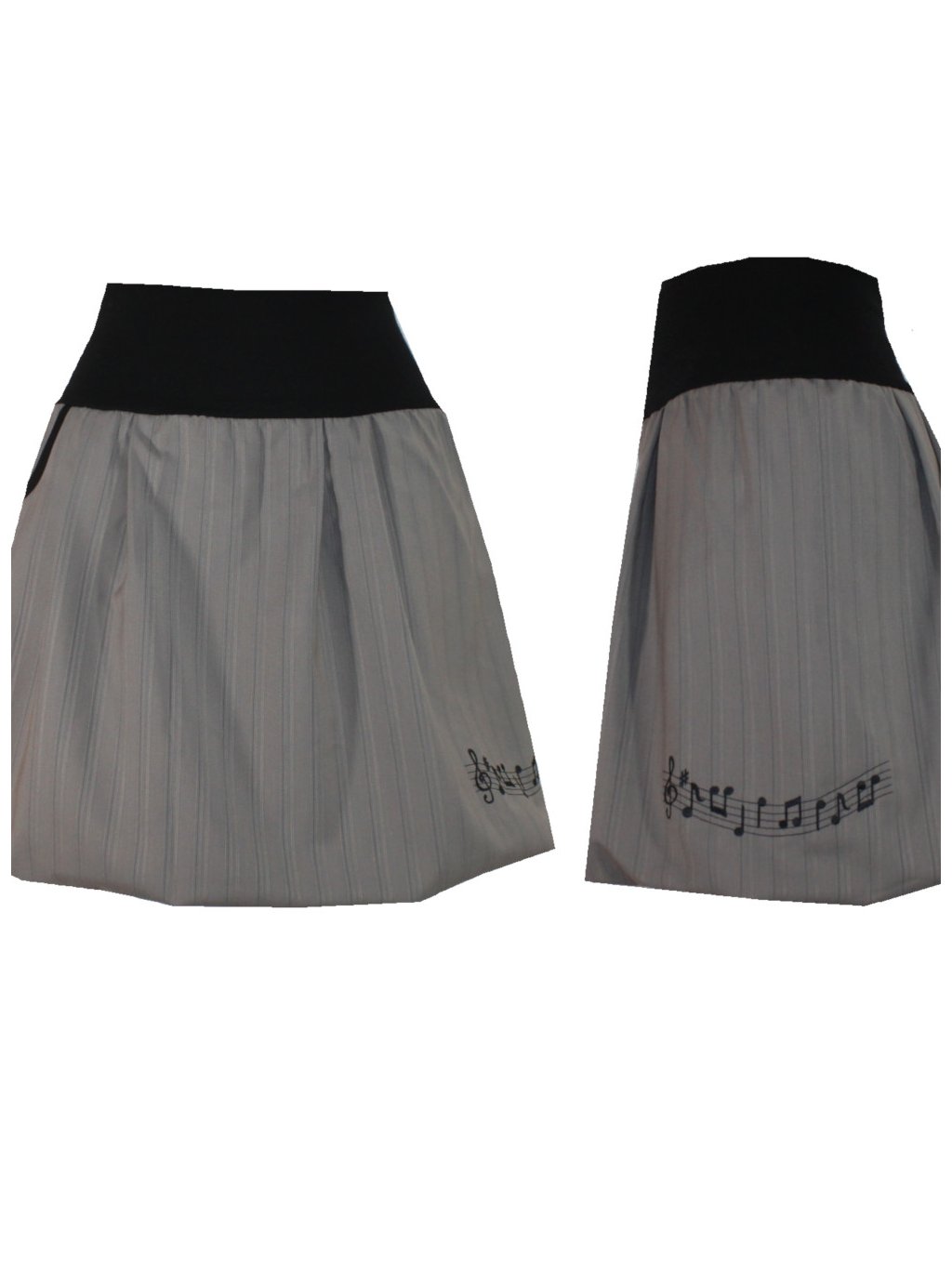Tato sukně na je balonového střihu, mírně rozšířená. V pase se 4 sklady.