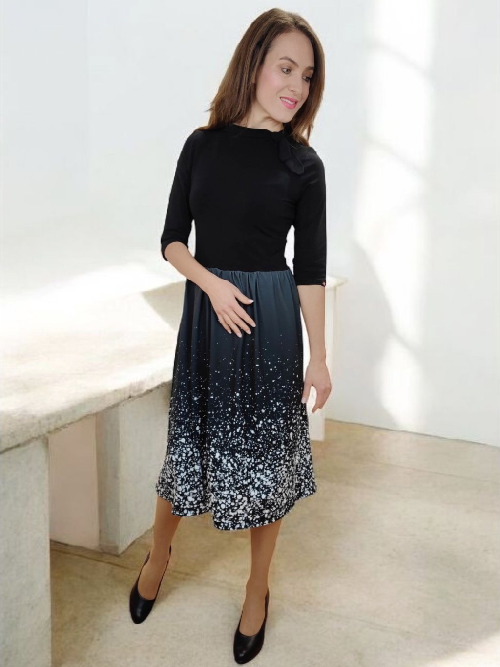 Tento model je ideální pro ženy, které hledají elegantní a slavnostní kousek pro večerní události, firemní večírky či slavnostní večeře. Doporučujeme kombinovat s jemným leskem – stříbrné náušnice, lakované lodičky – a nechat suknici hrát hlavní roli.