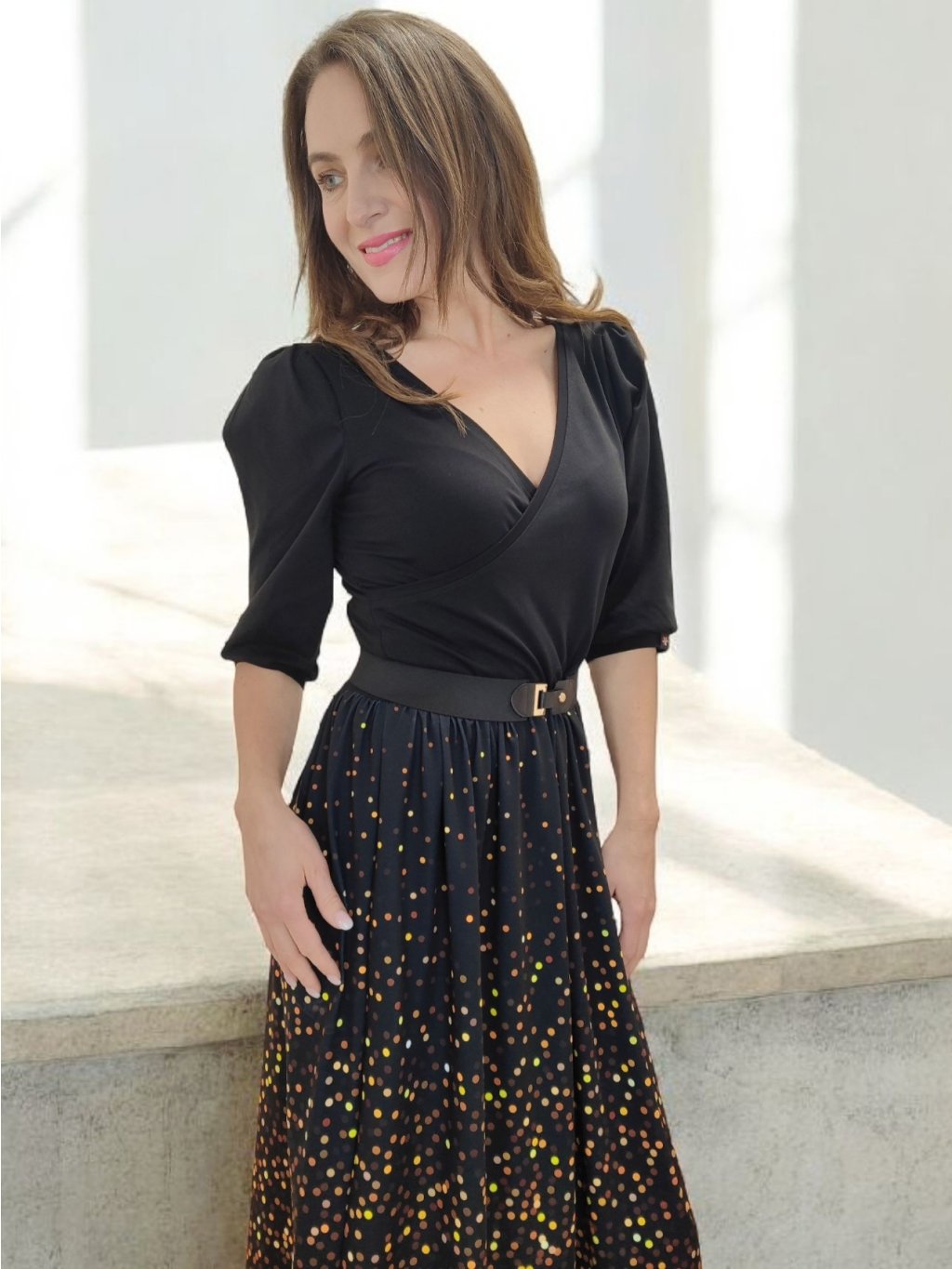Možná vás napadne, proč sáhnout po polyesteru. Přestože přírodní materiály mají své kouzlo, i polyester má své výhody – je lehčí než bavlna, rychle schne, nemačká se a drží si tvar i barvu. Perfektně se hodí pro podzimní šaty, které si můžete sbalit do kufru, nosit do práce i na víkendový výlet. Navíc stále častěji používáme recyklovaný polyester z plastových lahví, který snižuje ekologickou zátěž. Kvalitní zpracování pak zajišťuje, že materiál působí jemně, luxusně a příjemně na dotek – šaty jsou pohodlné a elegantní zároveň. Polyester může být tedy chytrou, zodpovědnou i praktickou volbou.