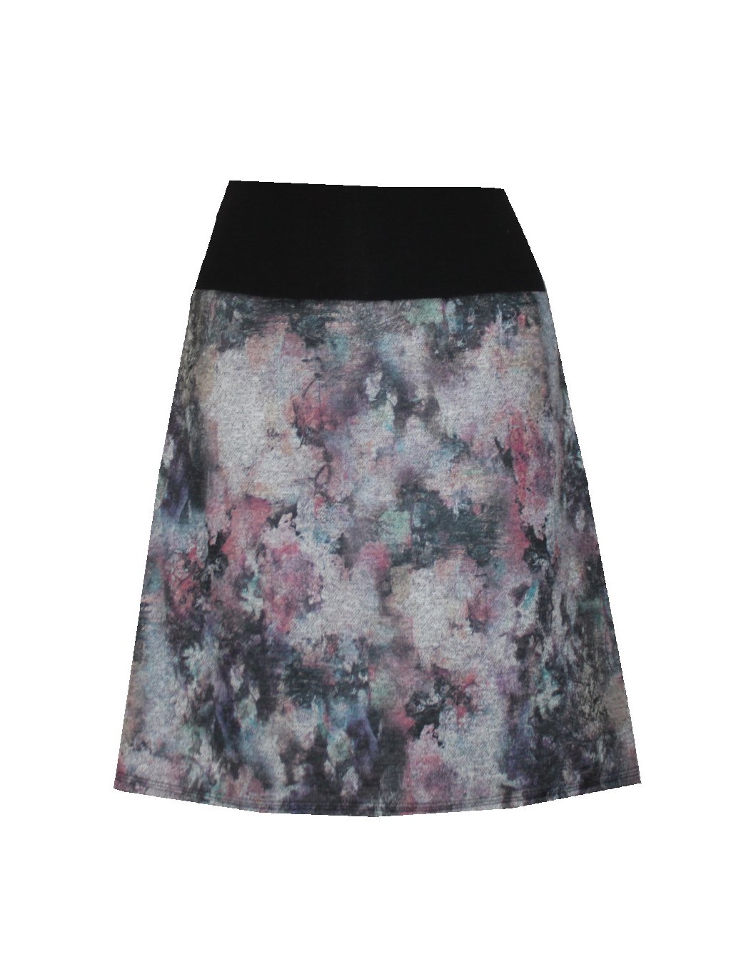 Sukně do áčka ke kolenům, vzorovaná do šedo růžova, podzim/zima