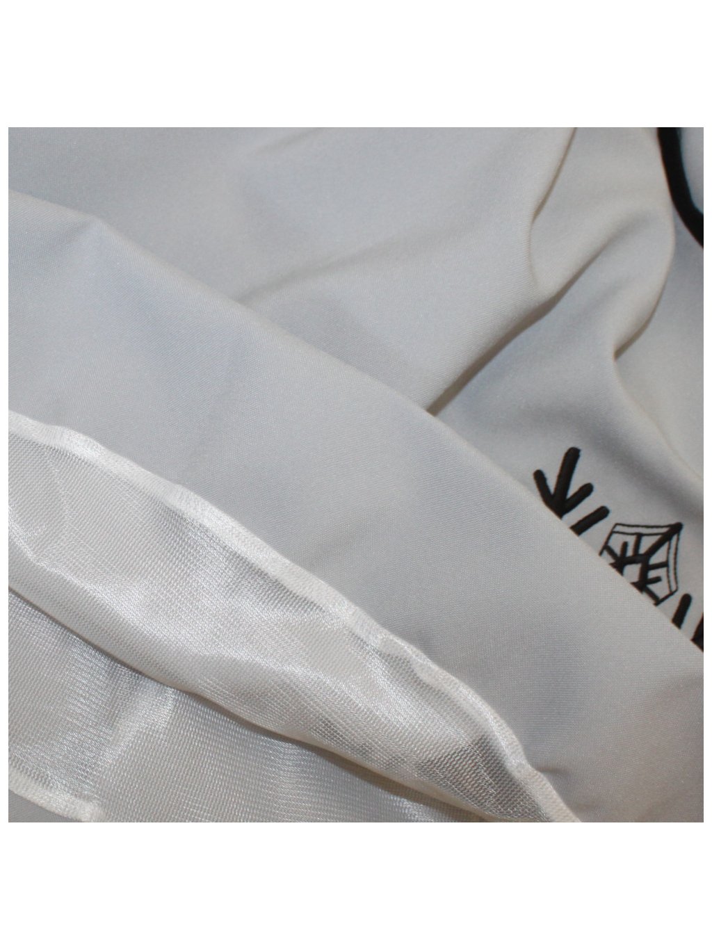 Vrchní materiál je nepružný černý, polyesterový, mírně trčavý, středně silný, mírně se leskne. 100% poylester.