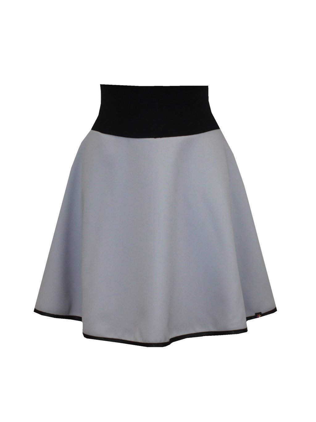 Světle šedá půlkolová sukně je pohodlná a univerzální. Sukně je vhodná celoročně.