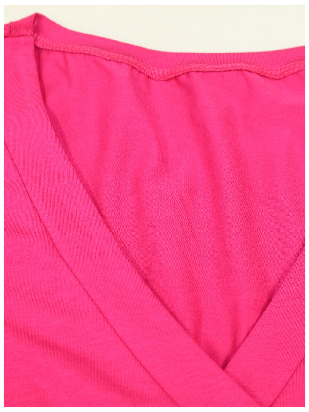 Tričko ROSA v sytě růžové barvě je výrazný a přitom velmi univerzální kousek šatníku. Překřížený výstřih na prsou vytváří jemnou V linii, která opticky prodlužuje siluetu a působí elegantně. 3/4 rukávy jsou ideální pro celoroční nošení – v teplejších dnech samostatně, v chladnějším období pod sako nebo kardigan.