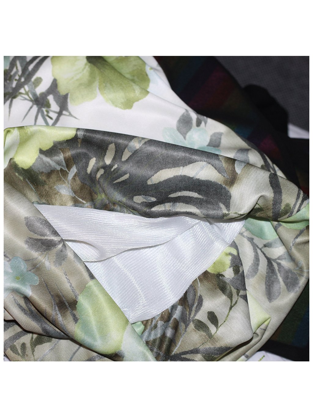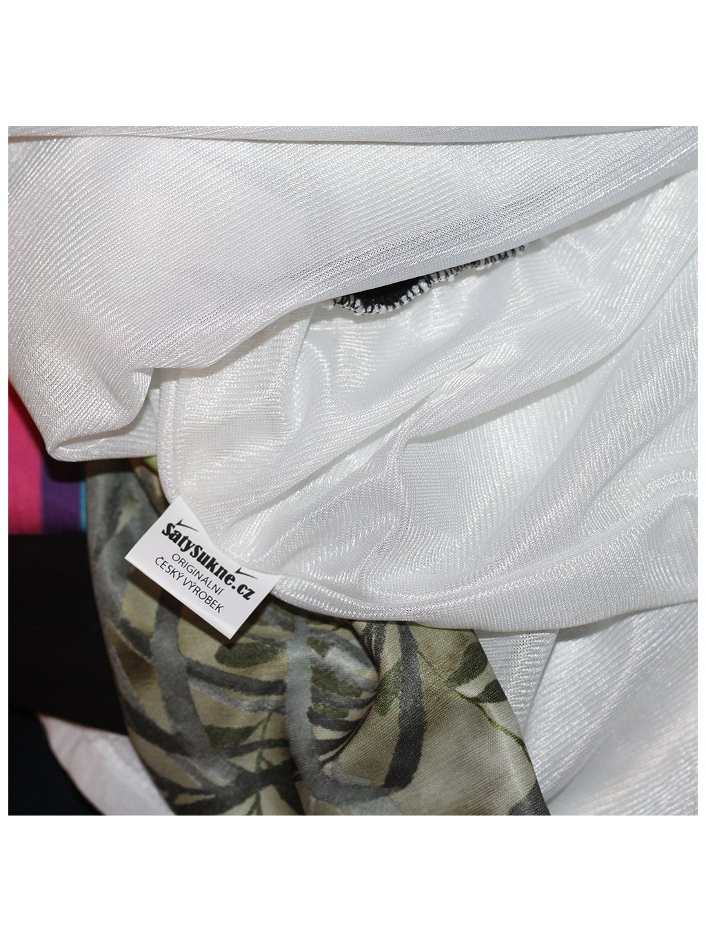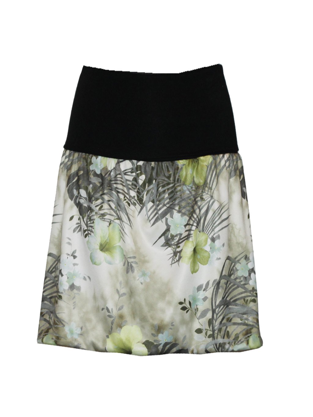 Sukně je v béžové barvě se zelenými květy, z jemného kvalitního úpletu, splývavého, pružného.