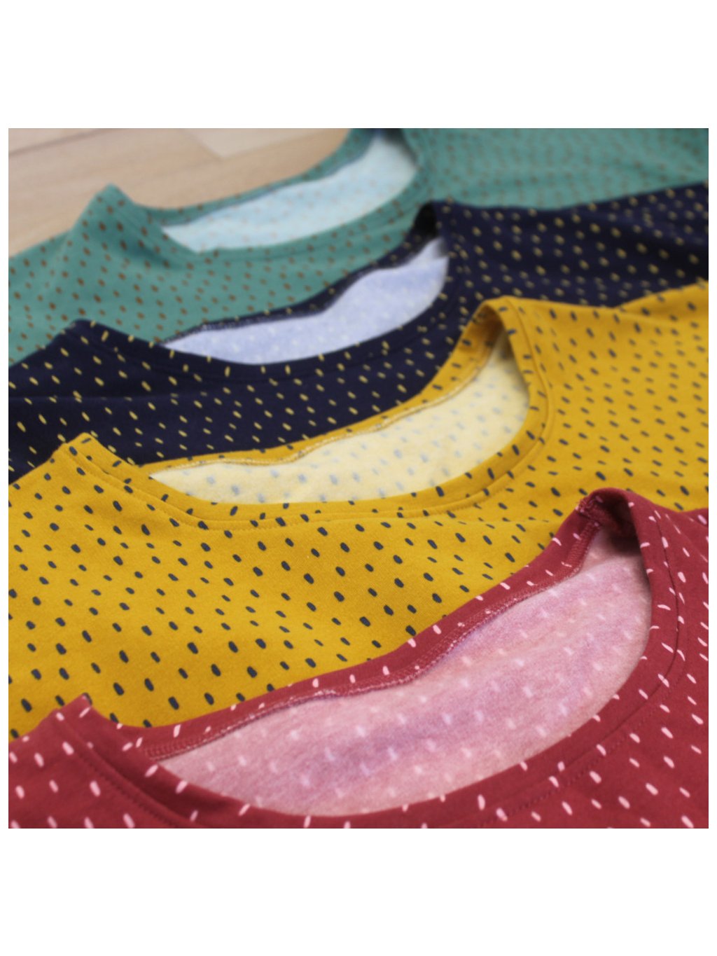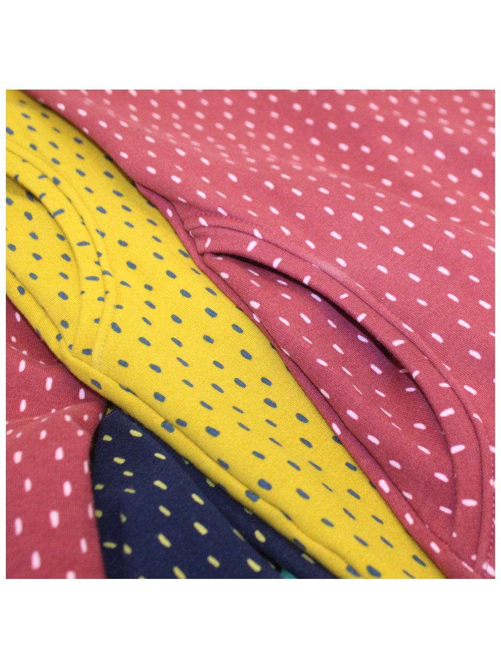 Bio bavlněný úplet 95% biobavlna/ 5% elastan. Materiál s certifikací GOTS. Více o Gots materiálech si můžete přečíst zde.