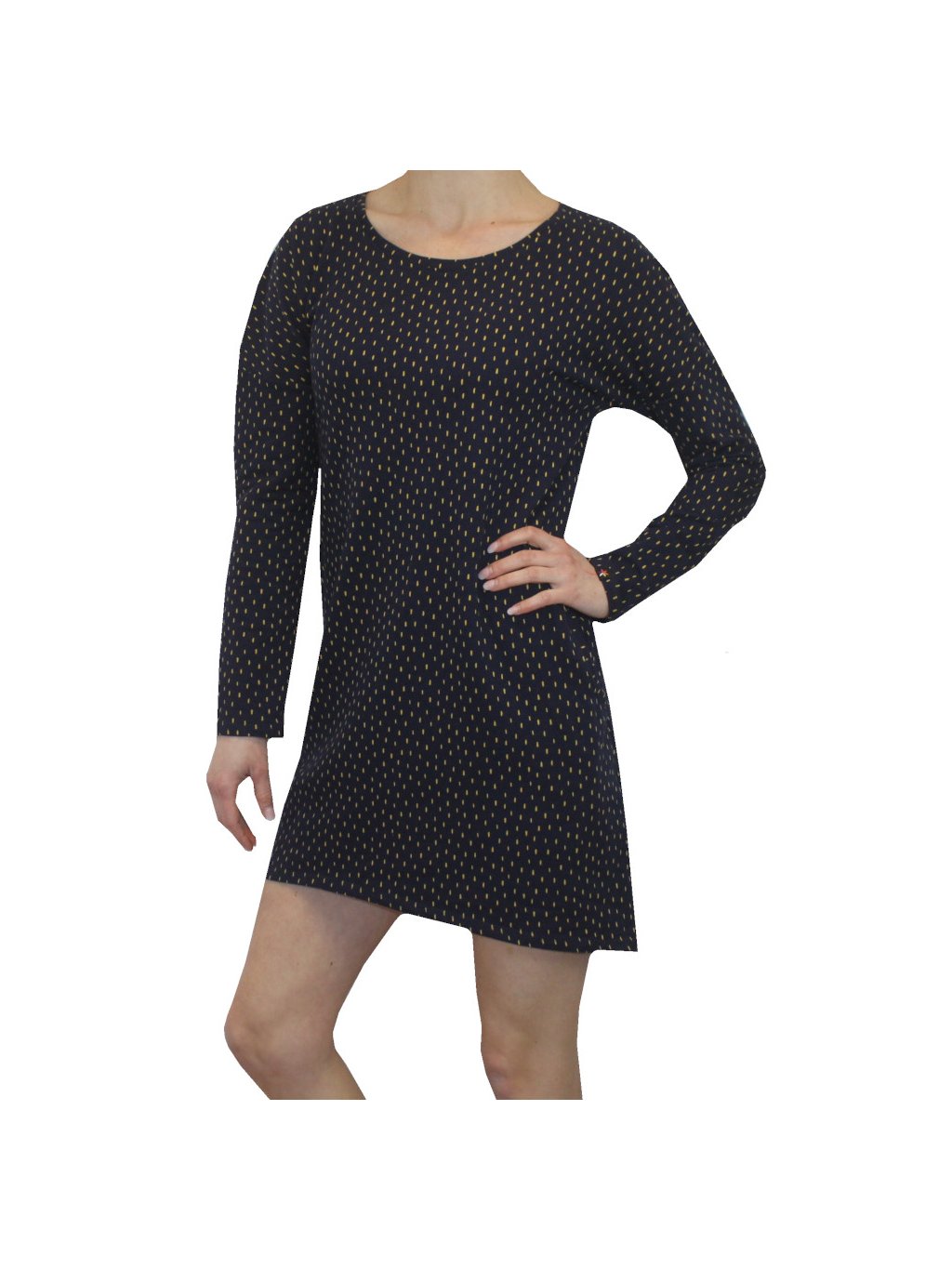 Tmavě modré šaty volnějšího střihu HANAH, drobný vzor, GOTS Smysl_má