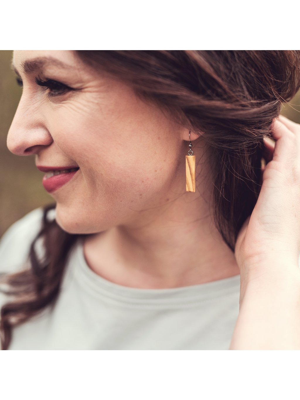 Visací dřevěné náušnice, ručně vyráběné, Oliva, kolekce Smysl_má