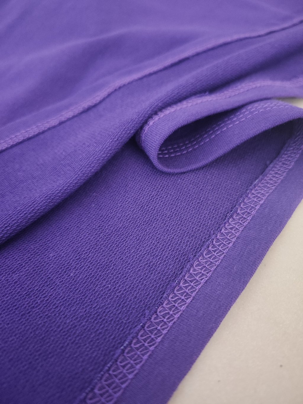 Šaty jsou ušité z hřejivější bavlněné mikinoviny české výroby. Materiál je měkký, pružný a velmi příjemný na těle. Díky tomu jsou tyto fialové šaty ideální pro celodenní nošení, především od podzimu do jara.