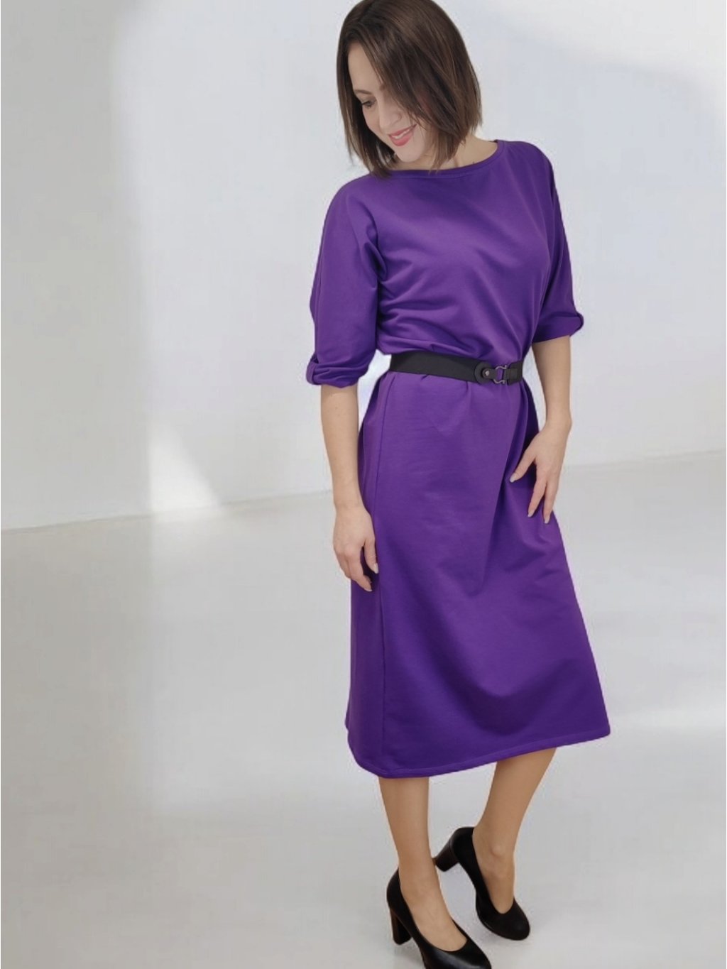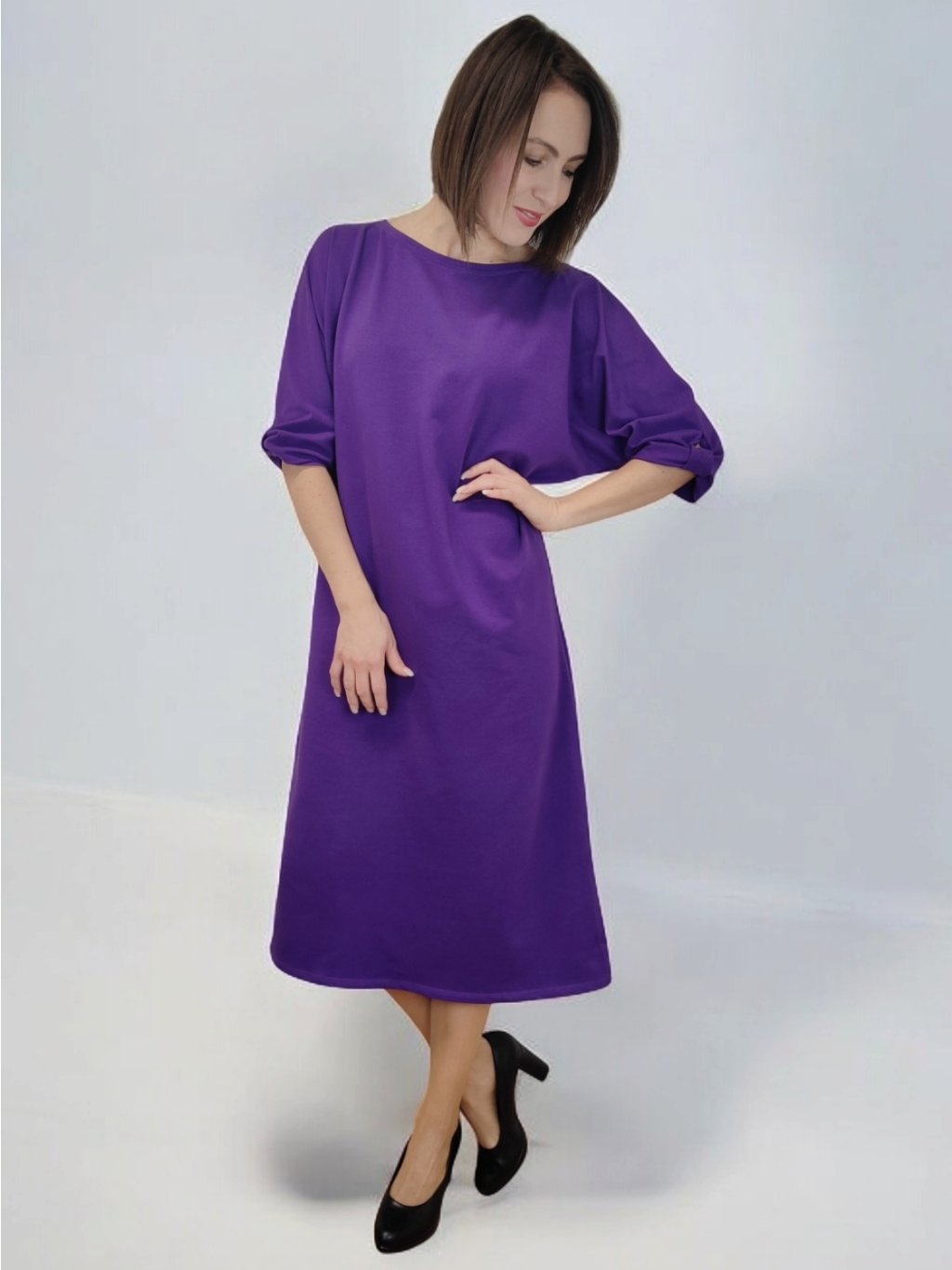 Fialové šaty LAMIA – volné a pohodlné